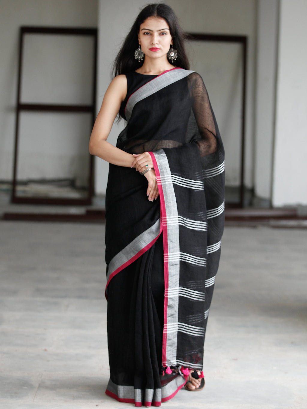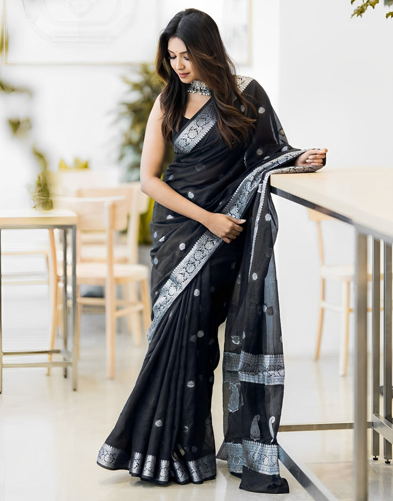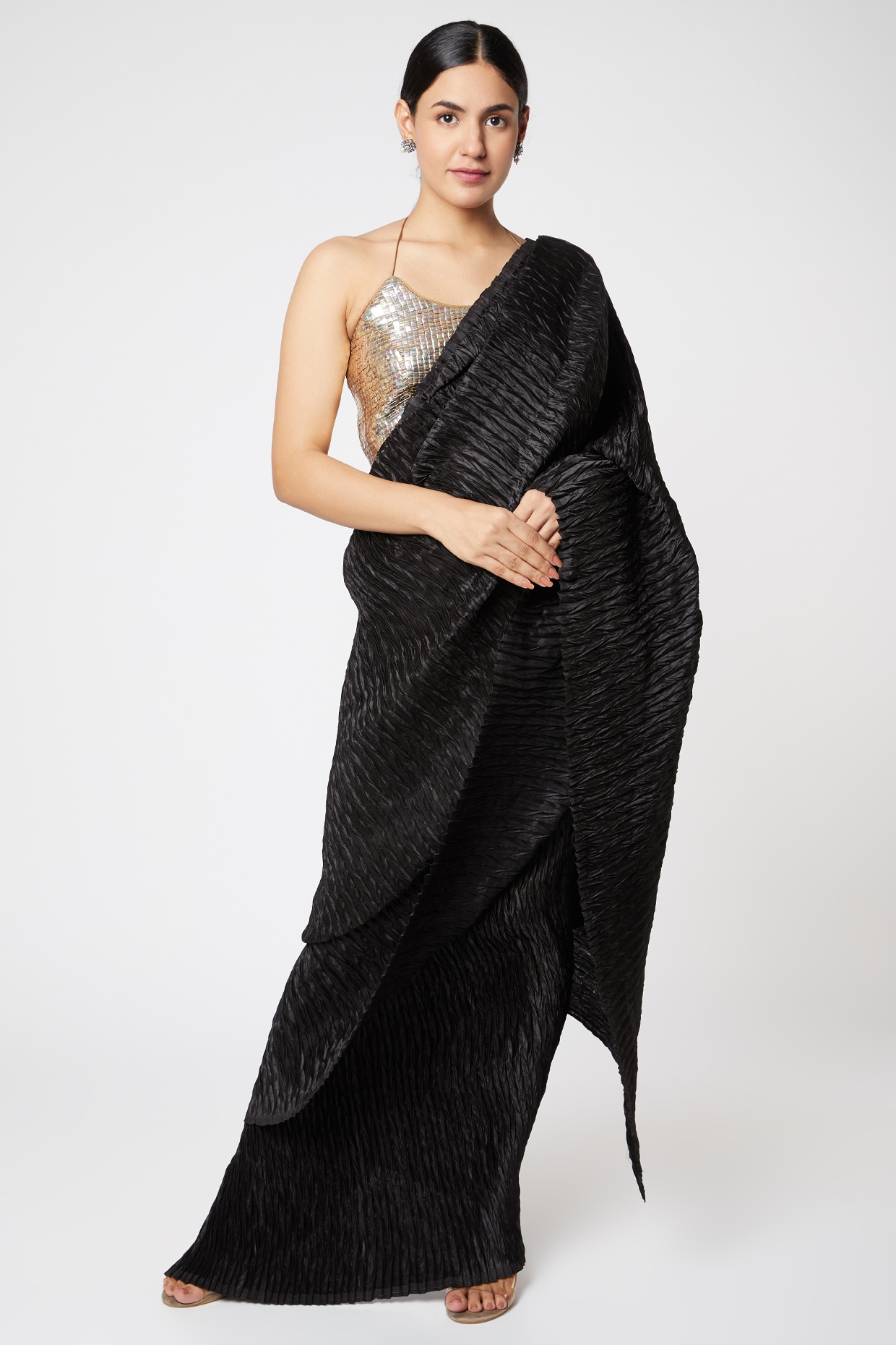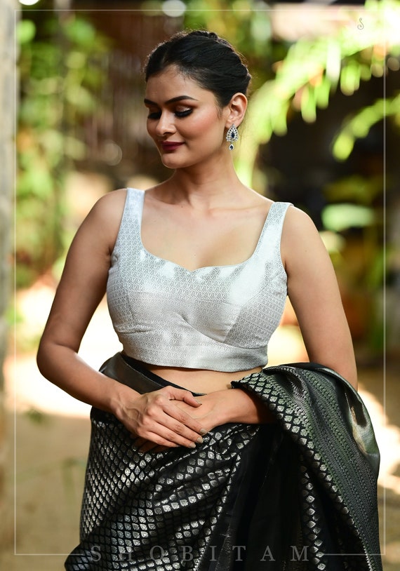 silver blouse with black saree