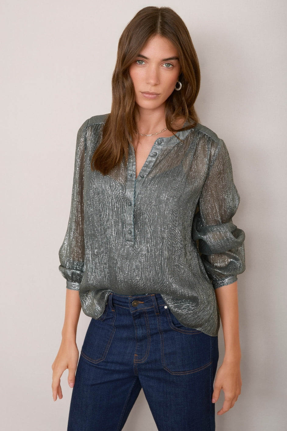 silver gray blouse