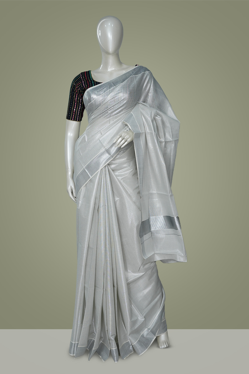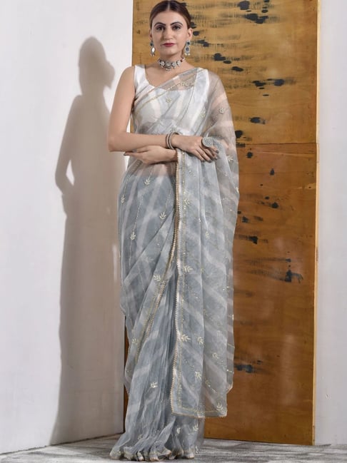silver saree blouse combination