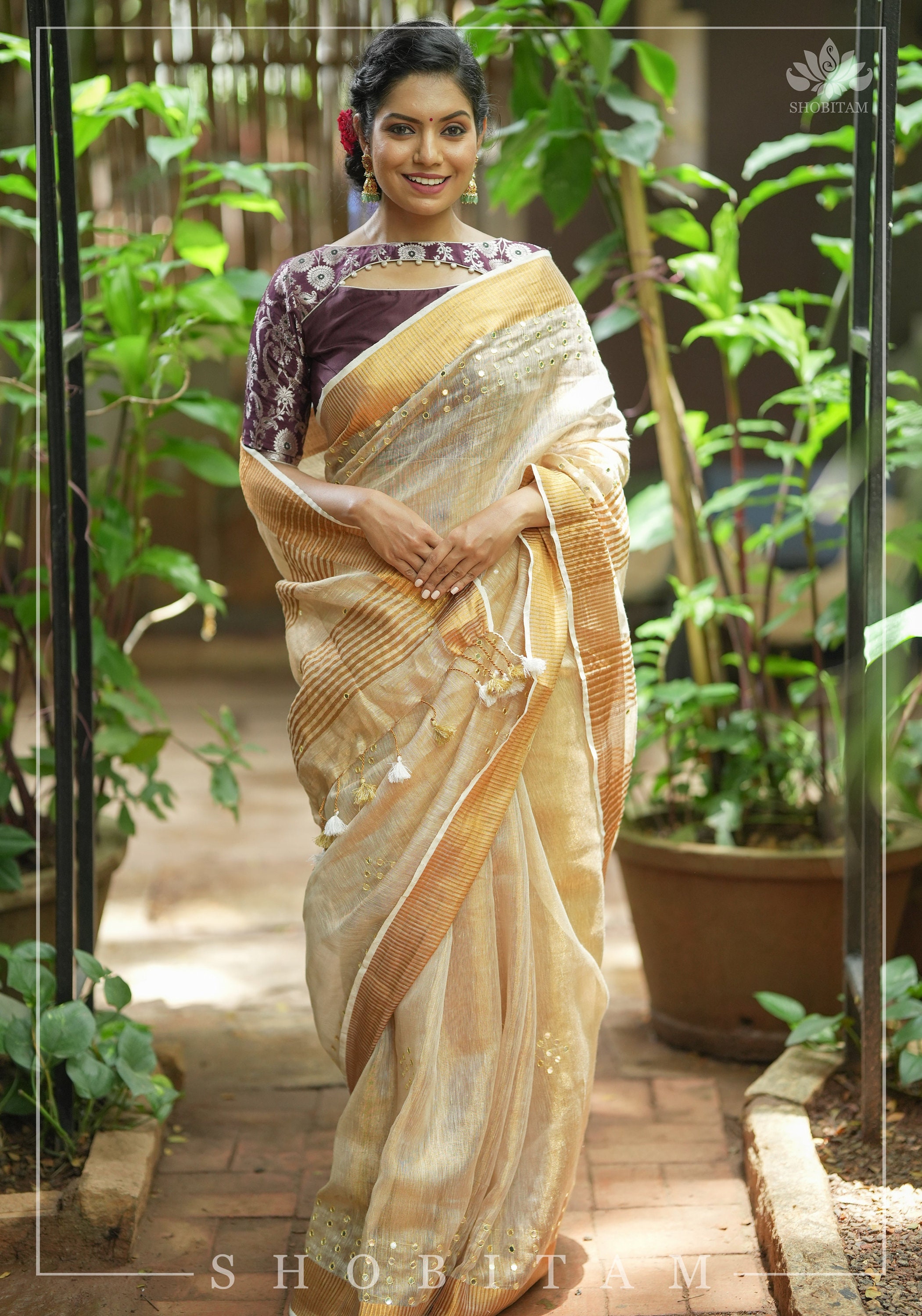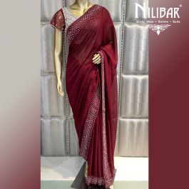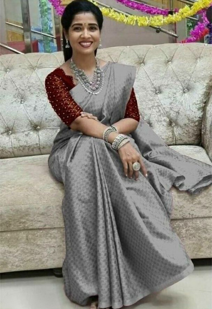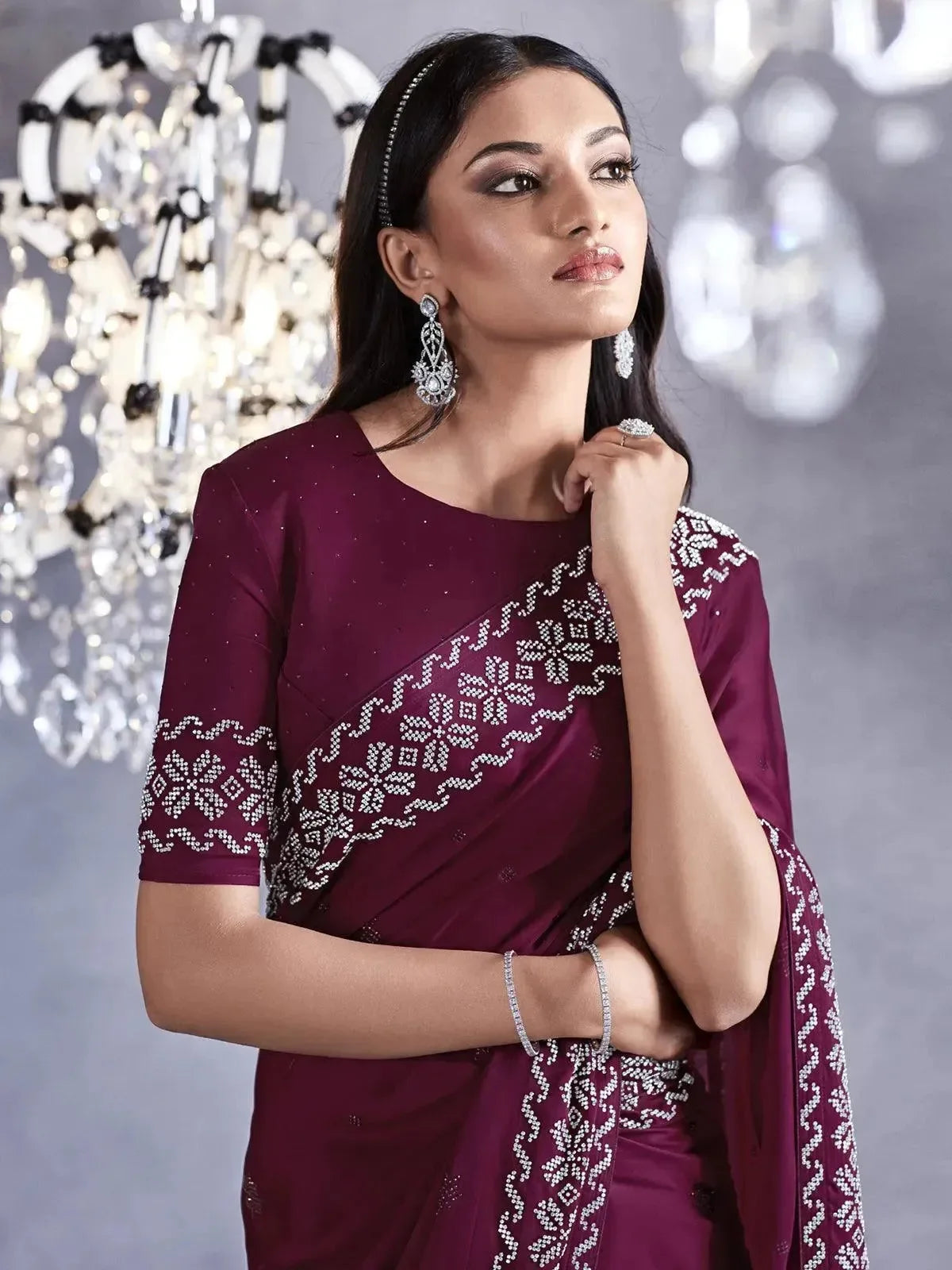 silver saree with maroon blouse