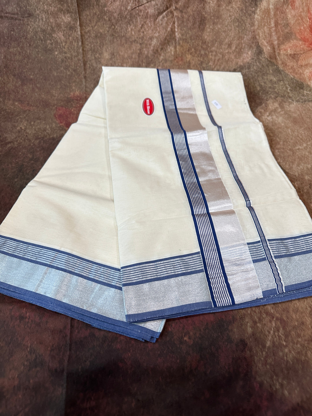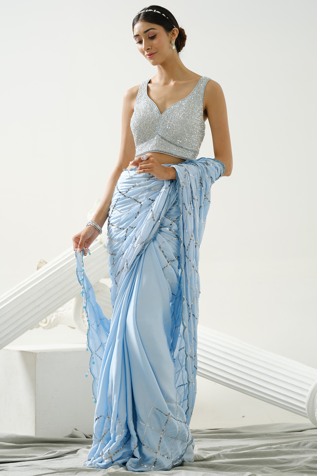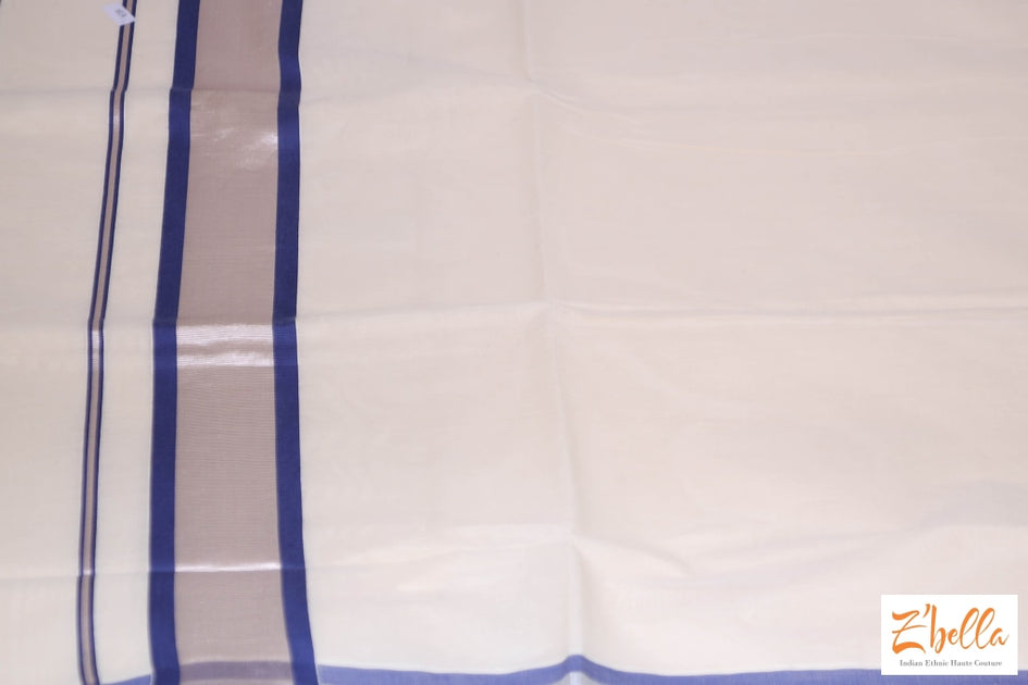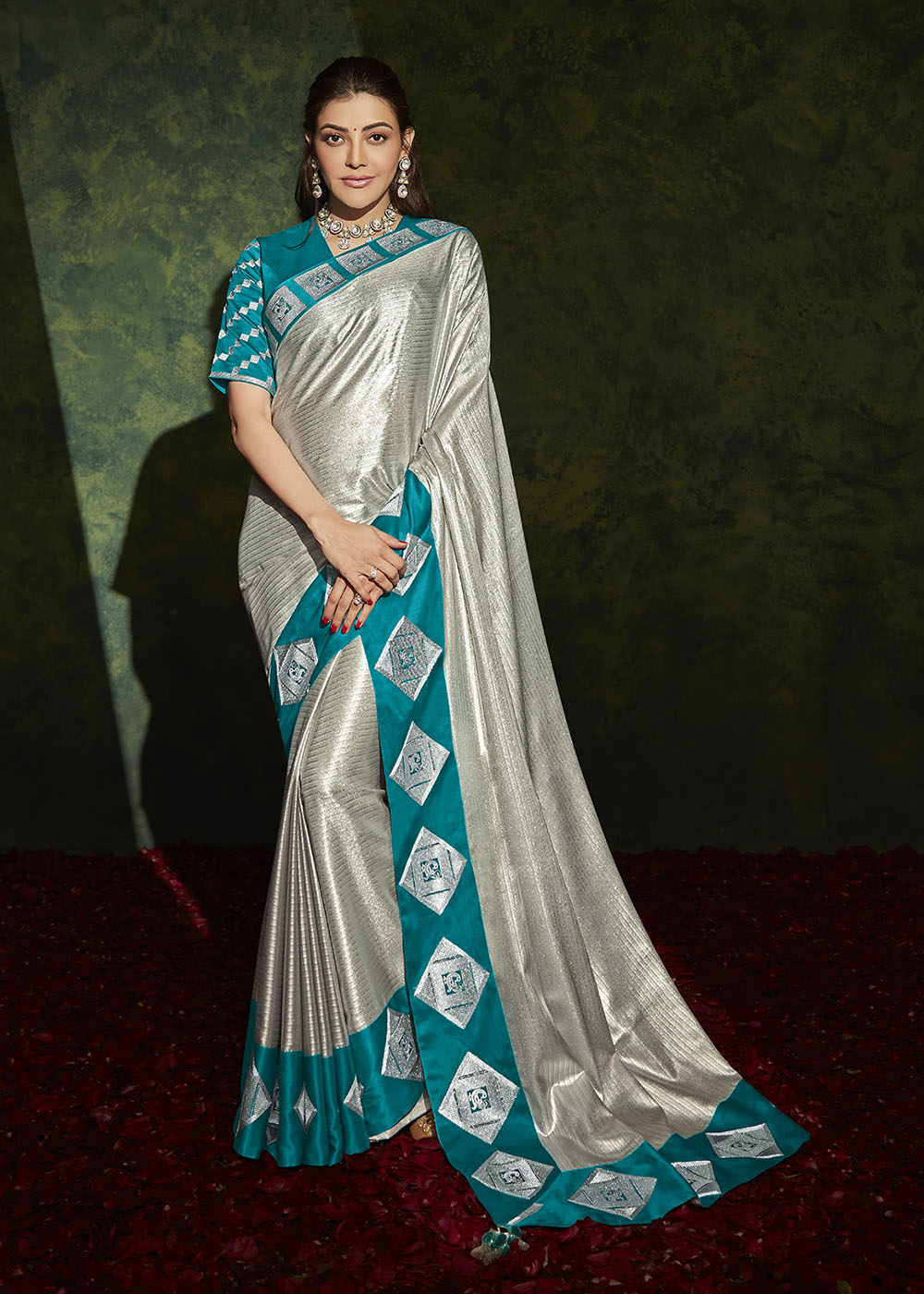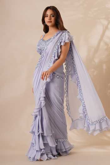 silver set saree with blue blouse