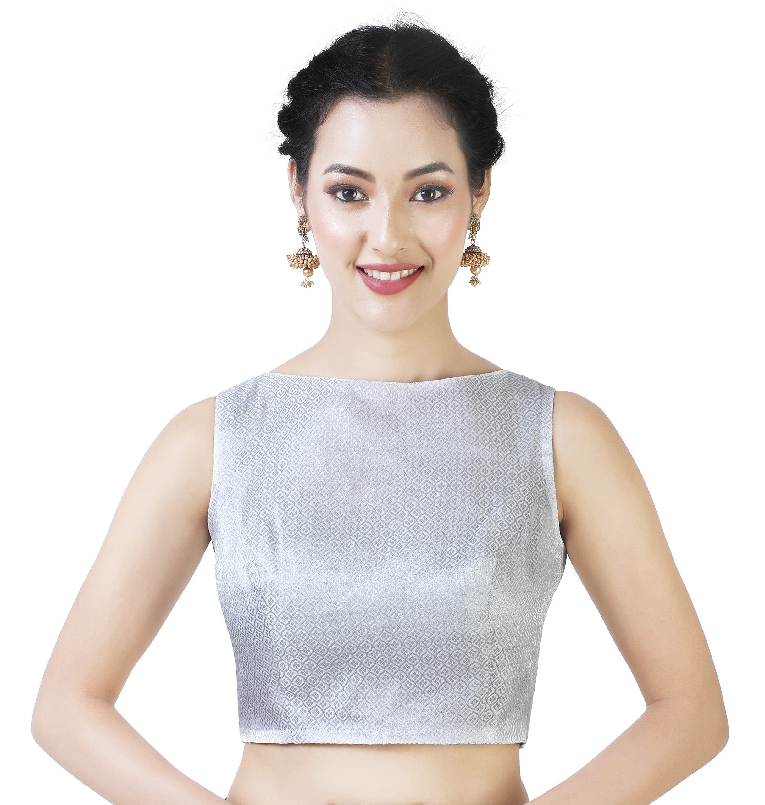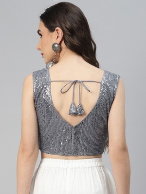 silver sleeveless saree blouse