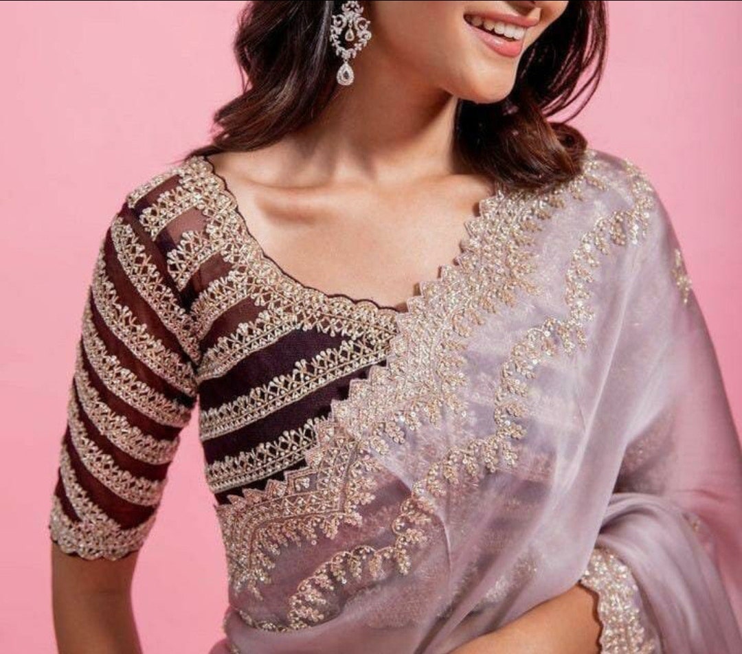 silver thread maggam work blouse