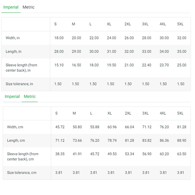 size chart weekend offender