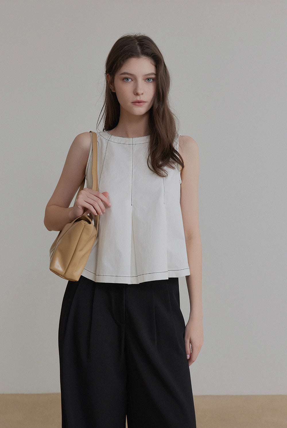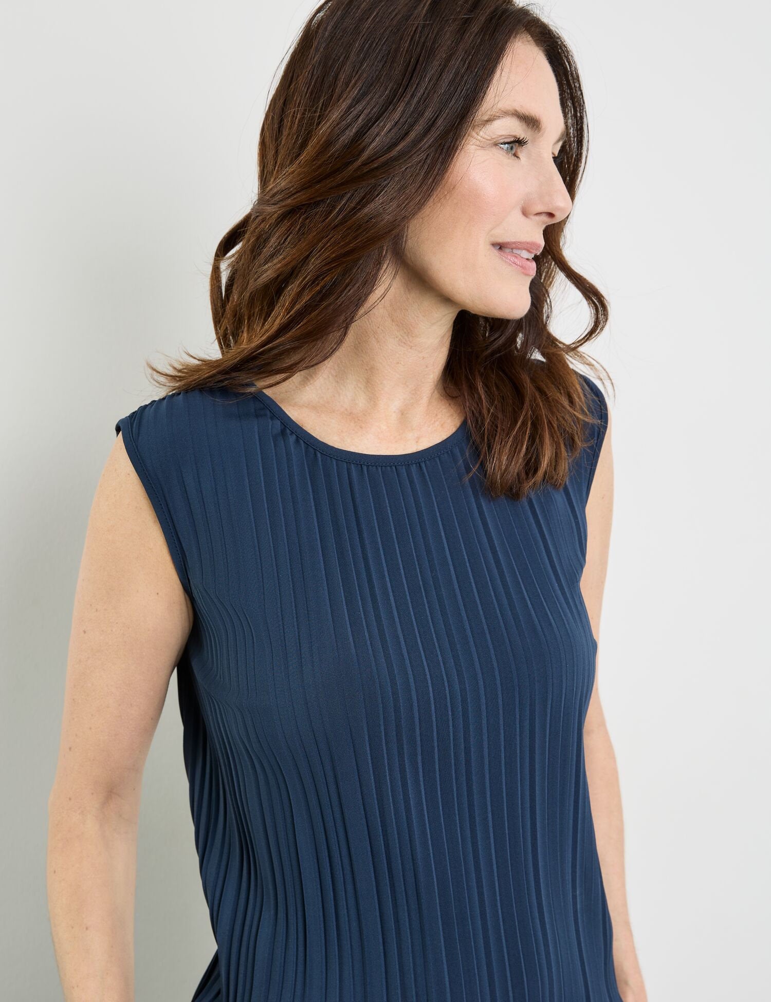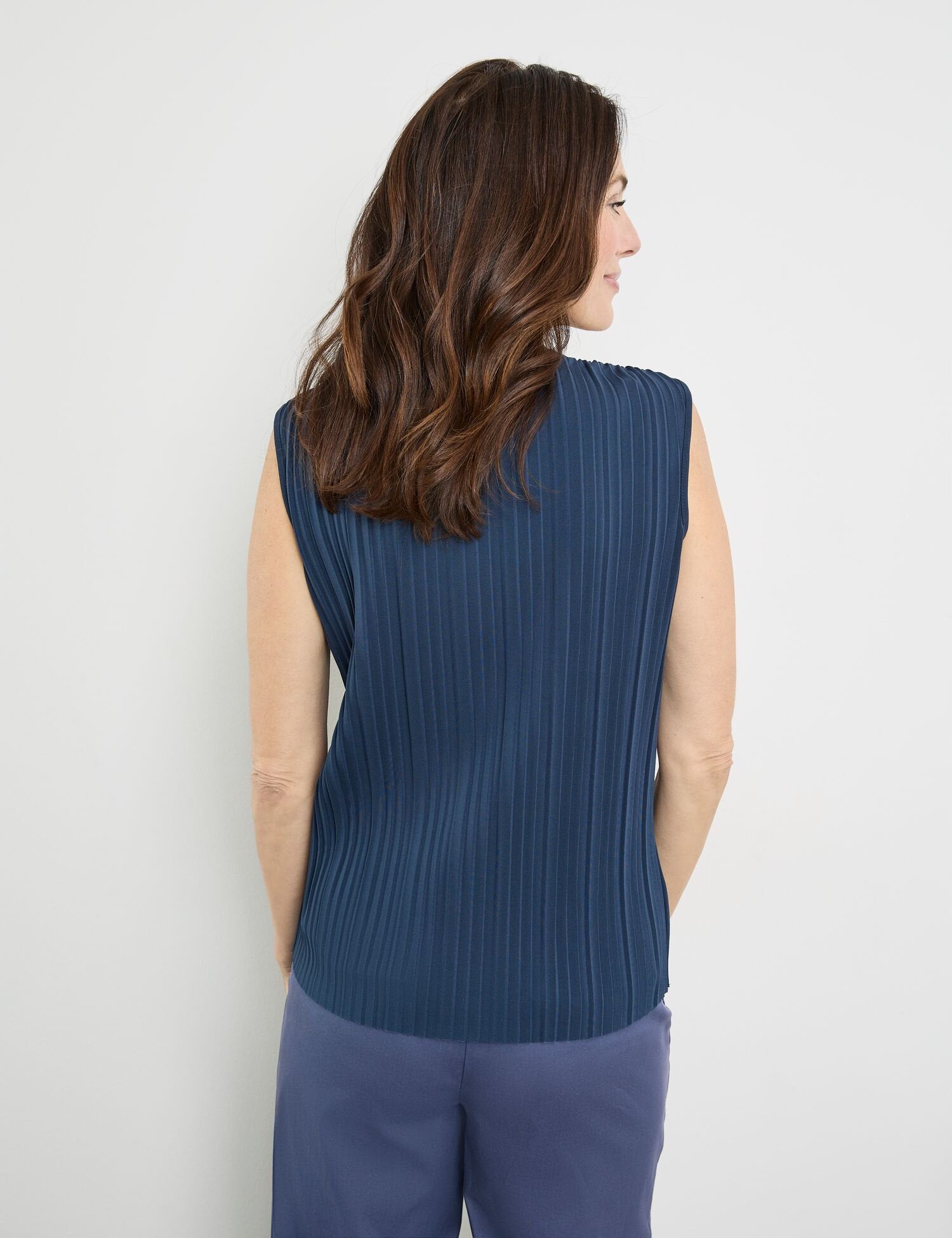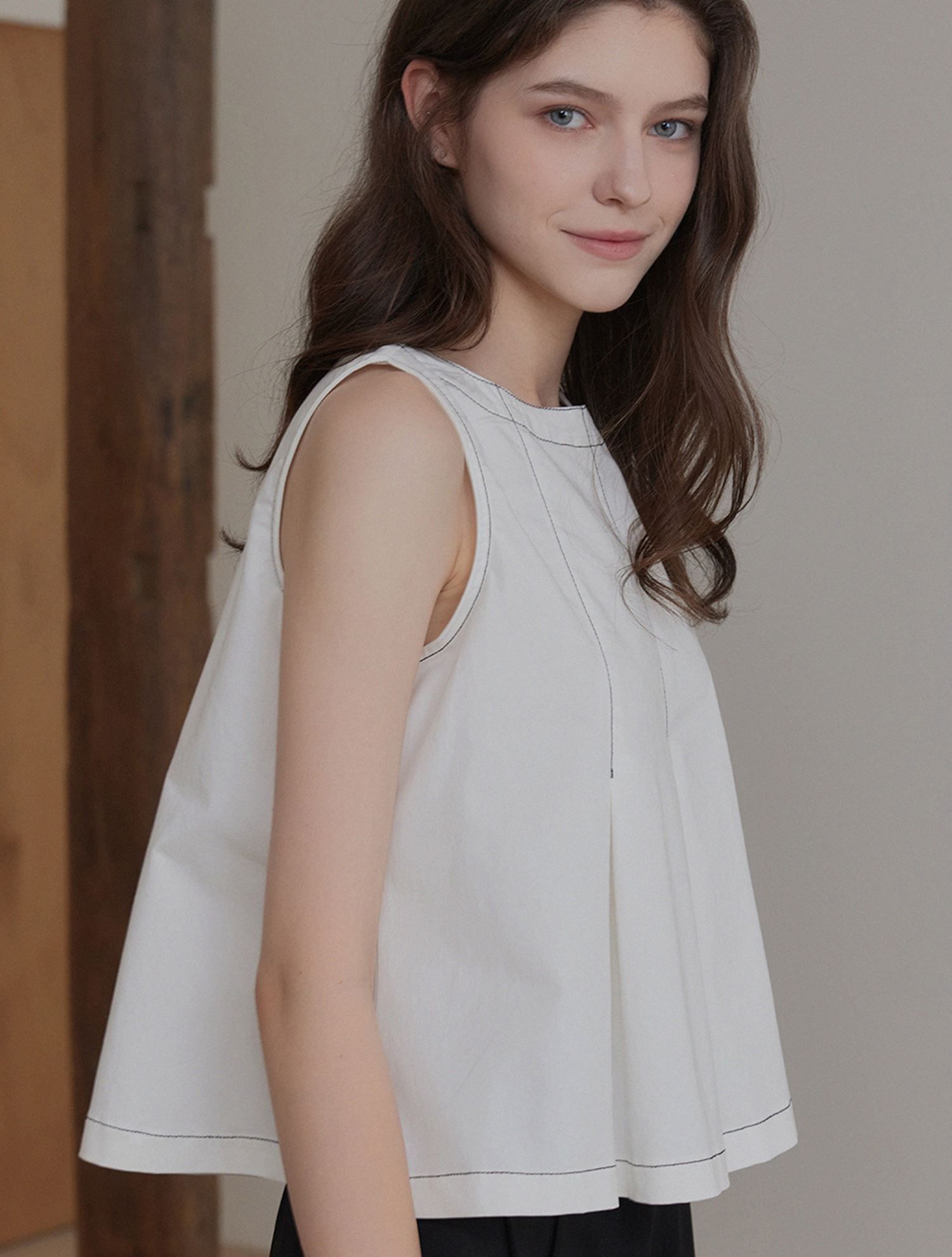 sleeveless pleated blouse