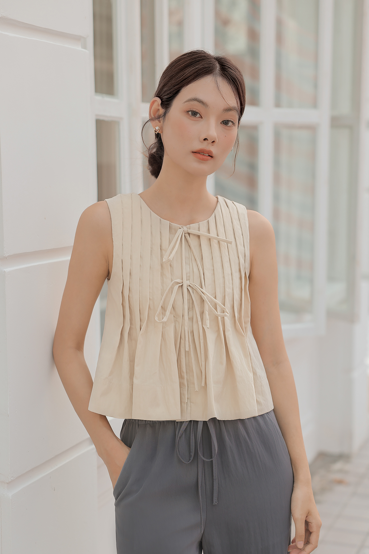 sleeveless pleated top