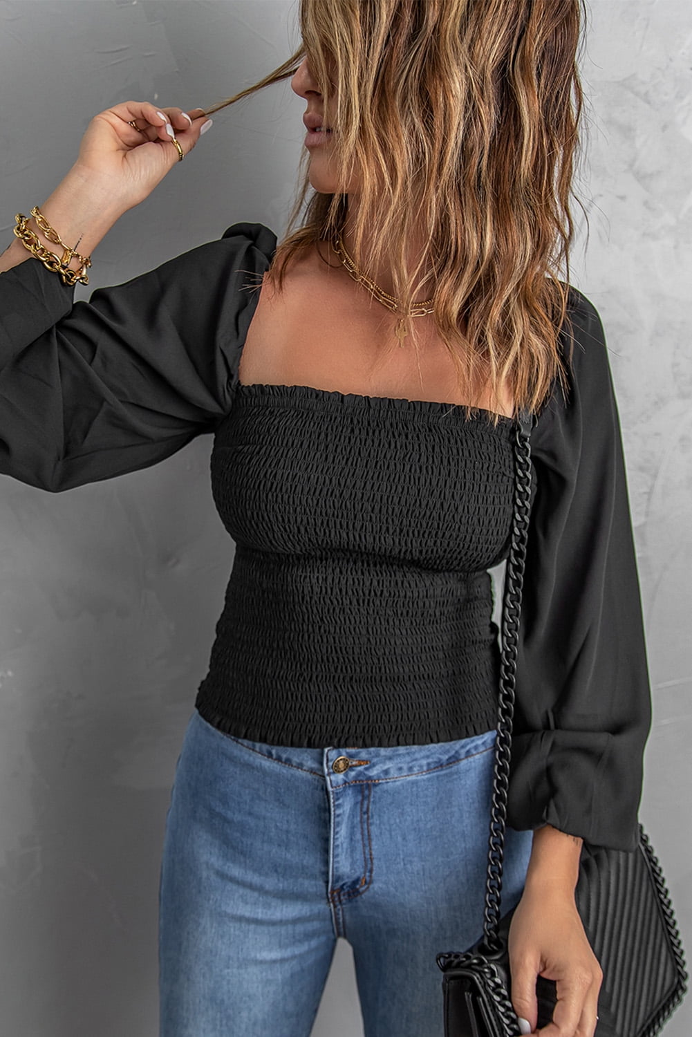 smocked black top