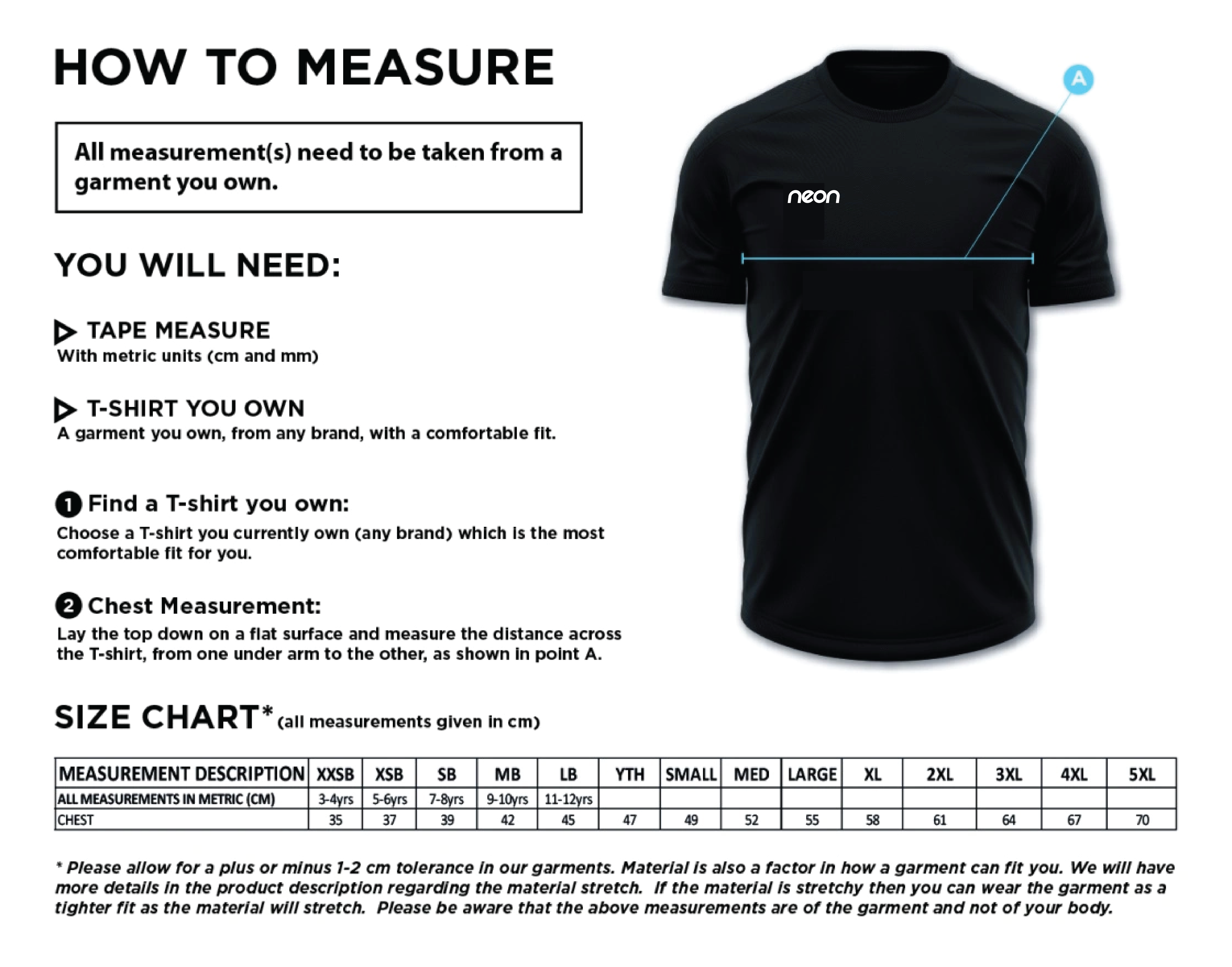 softex t shirt size chart