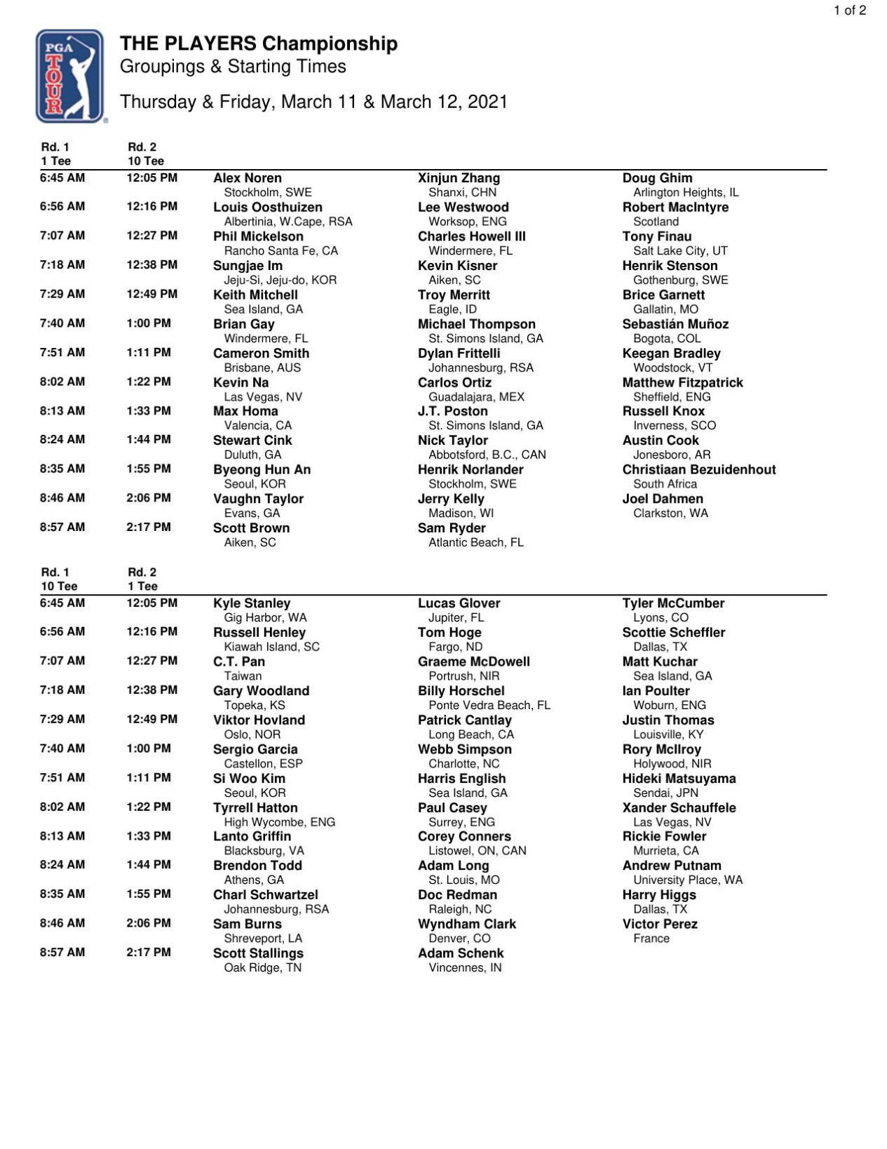 sony open tee times 2021