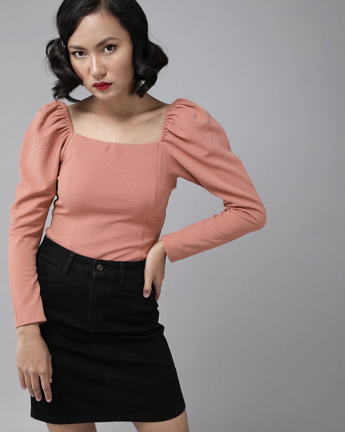 square neck puff top