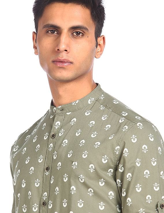 stand collar shirt printed