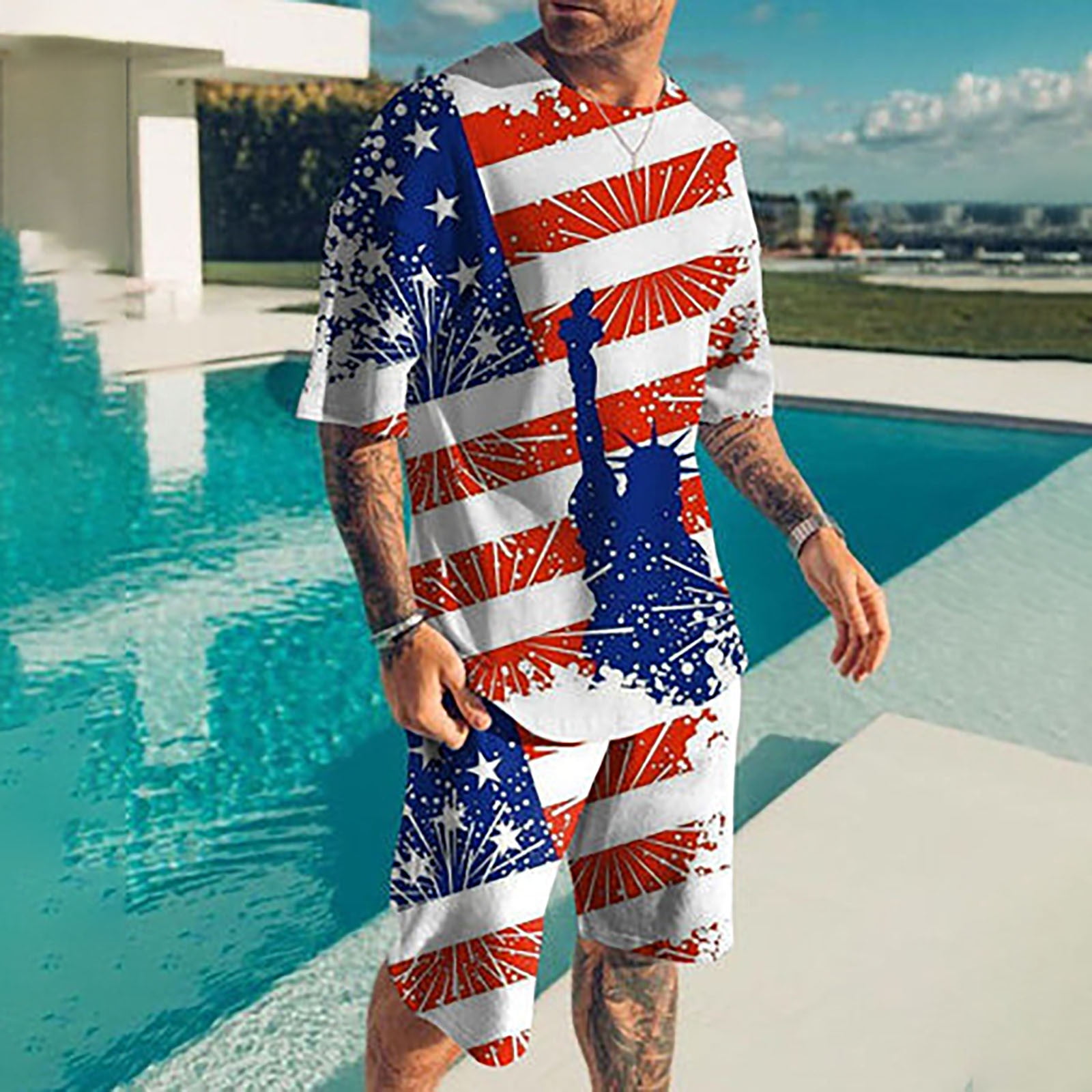 suit with printed shirt