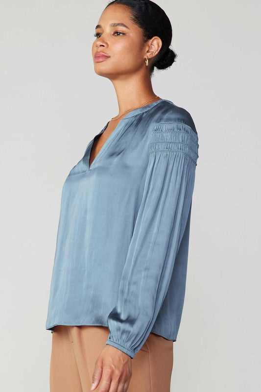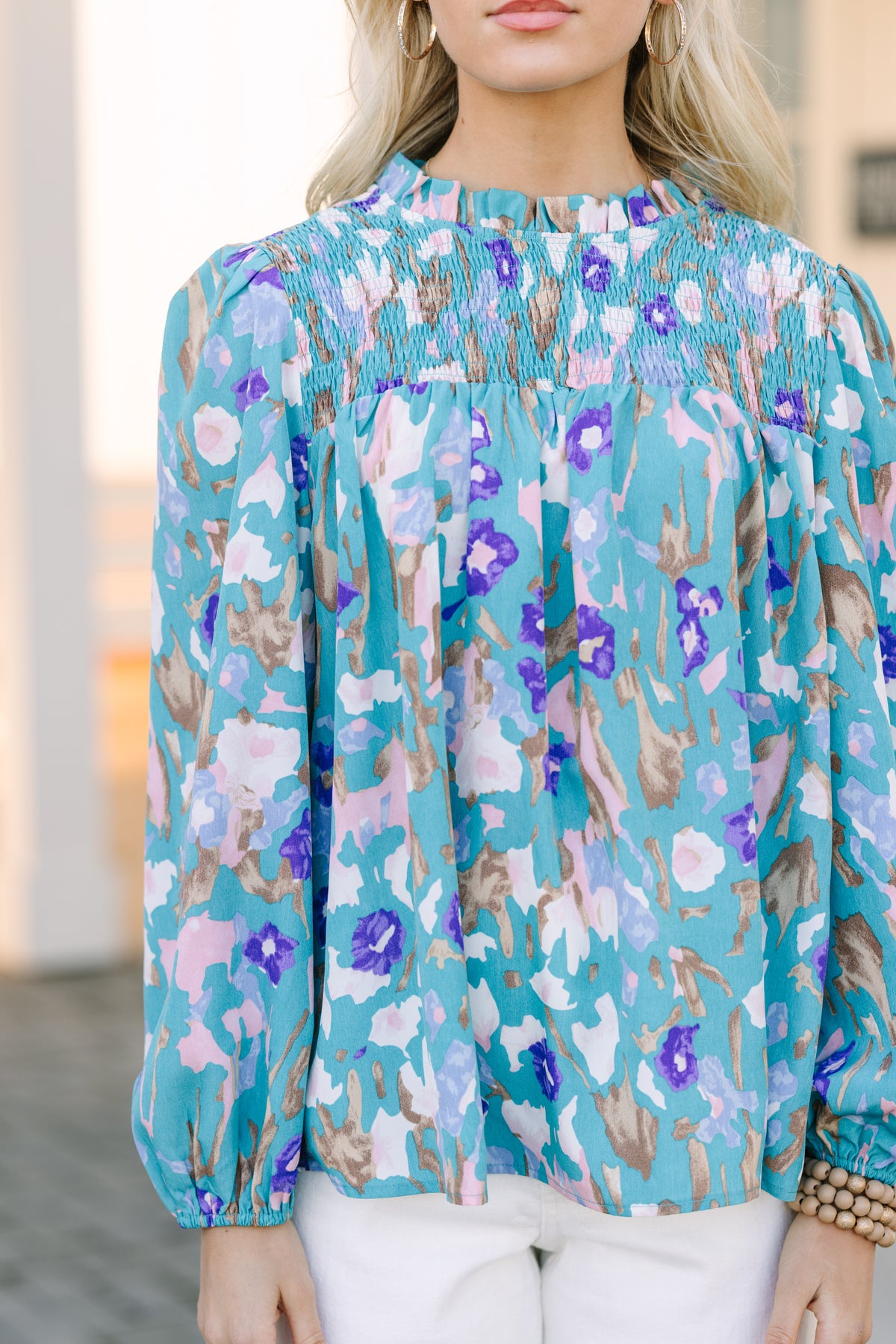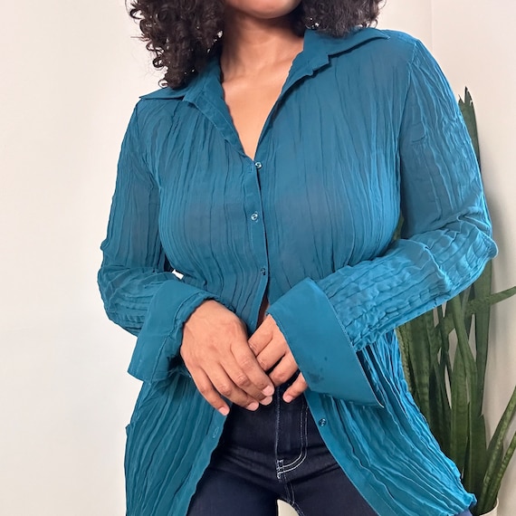 teal blue blouse