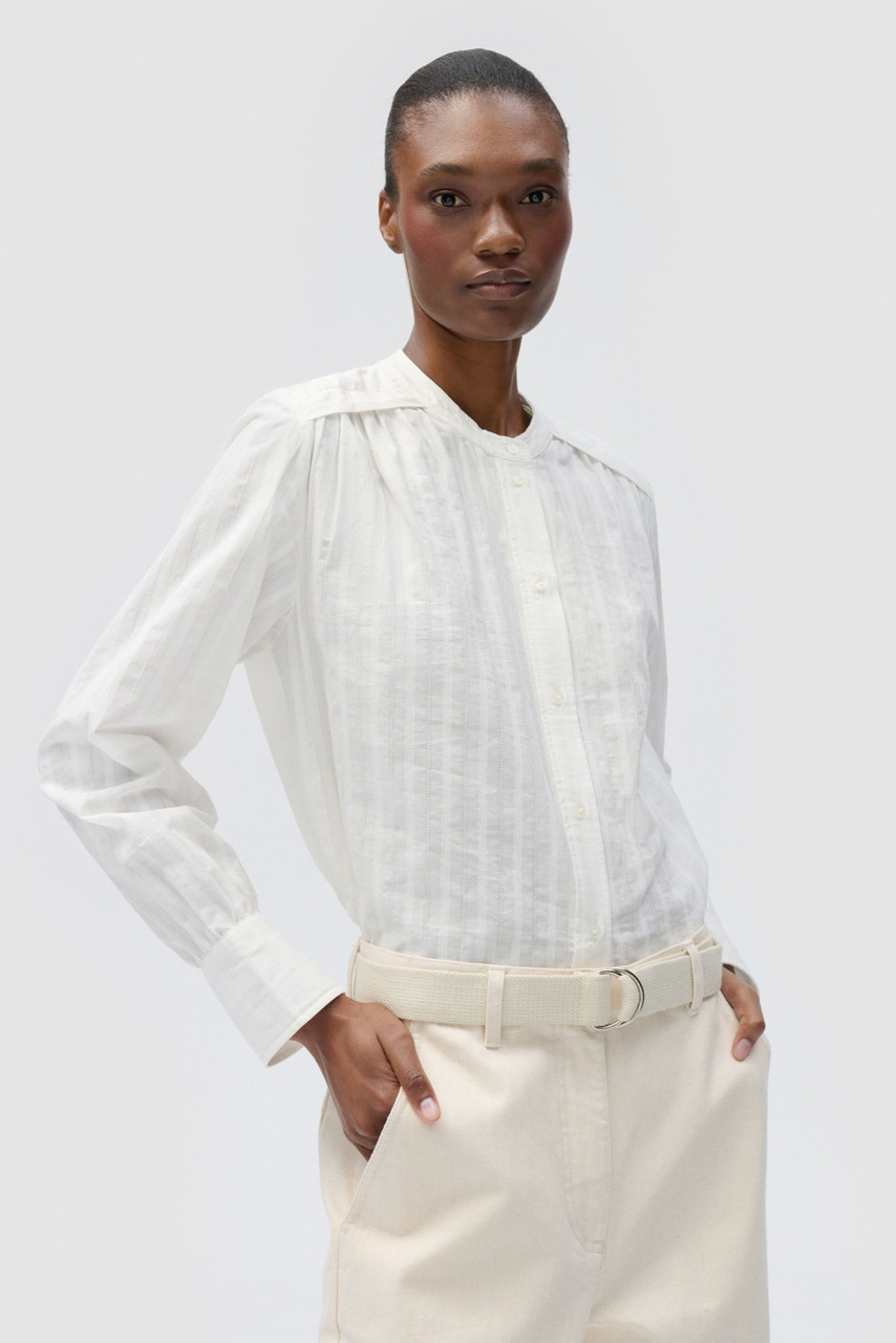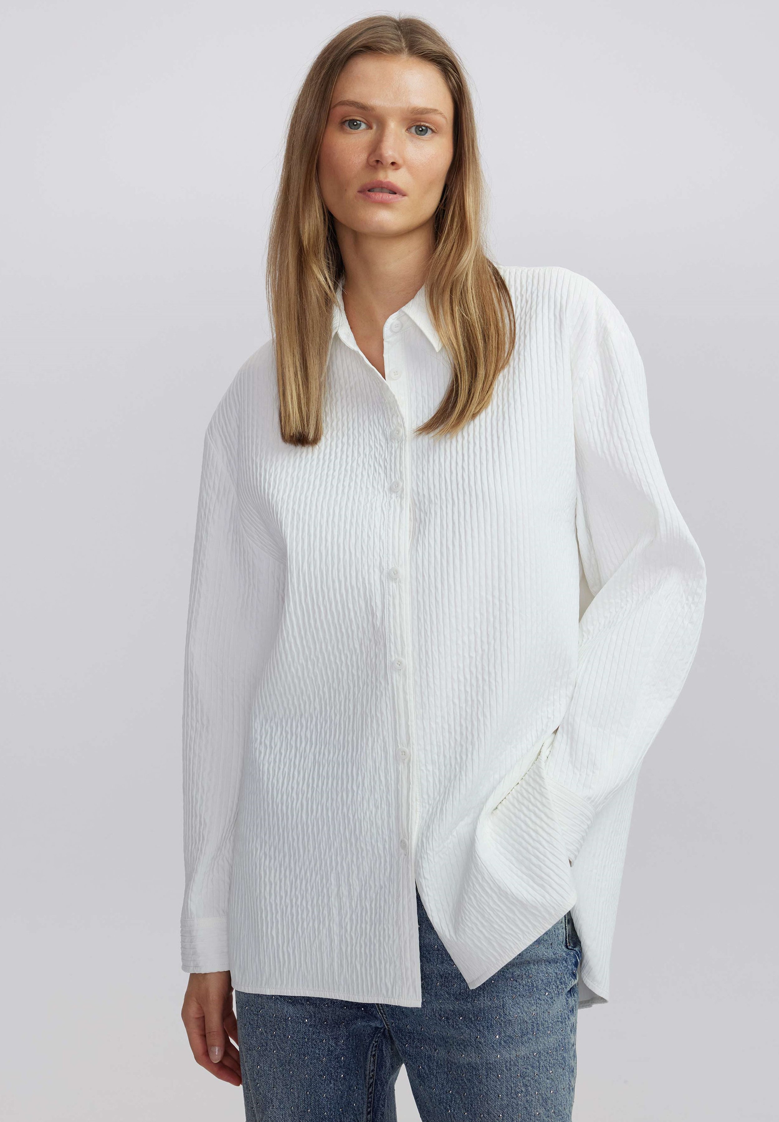 textured white blouse