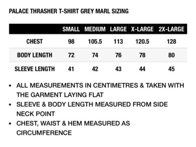 thrasher t shirt size chart