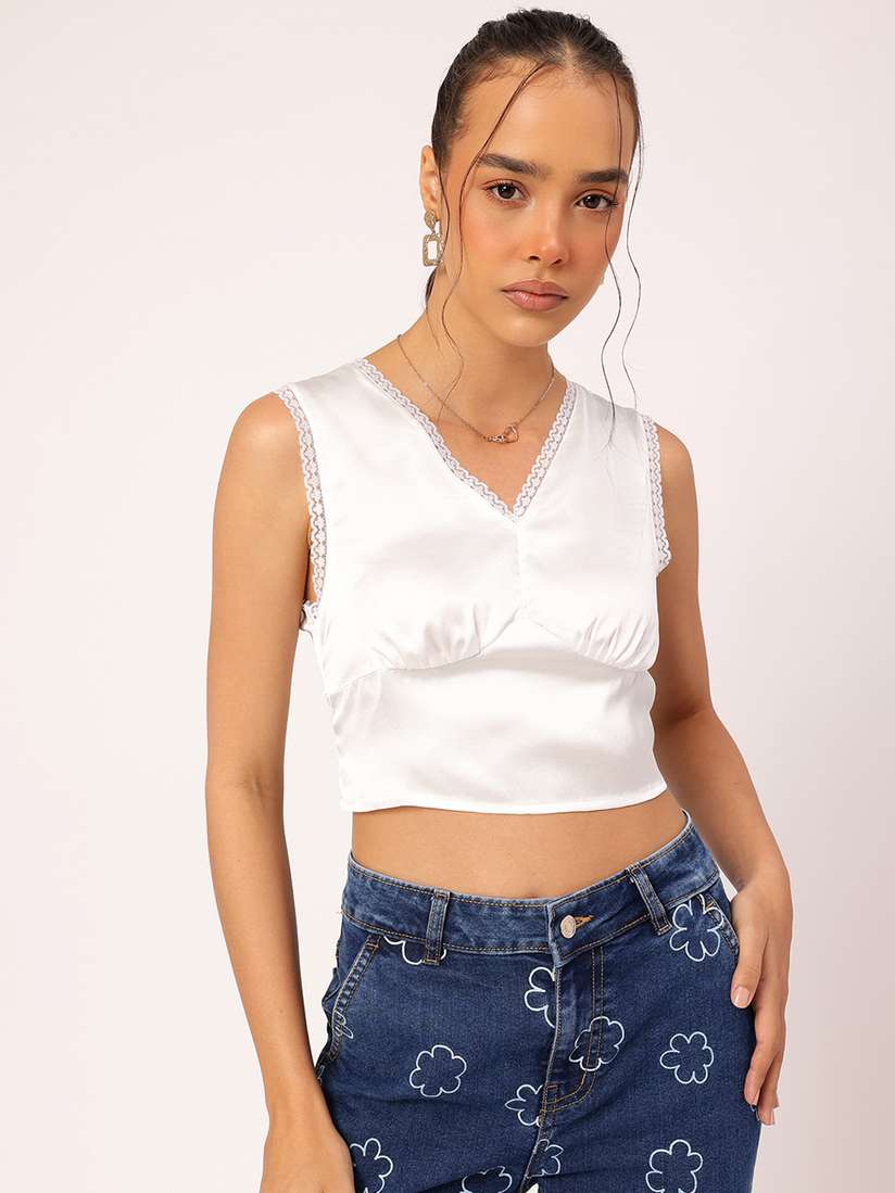 tie back satin crop top