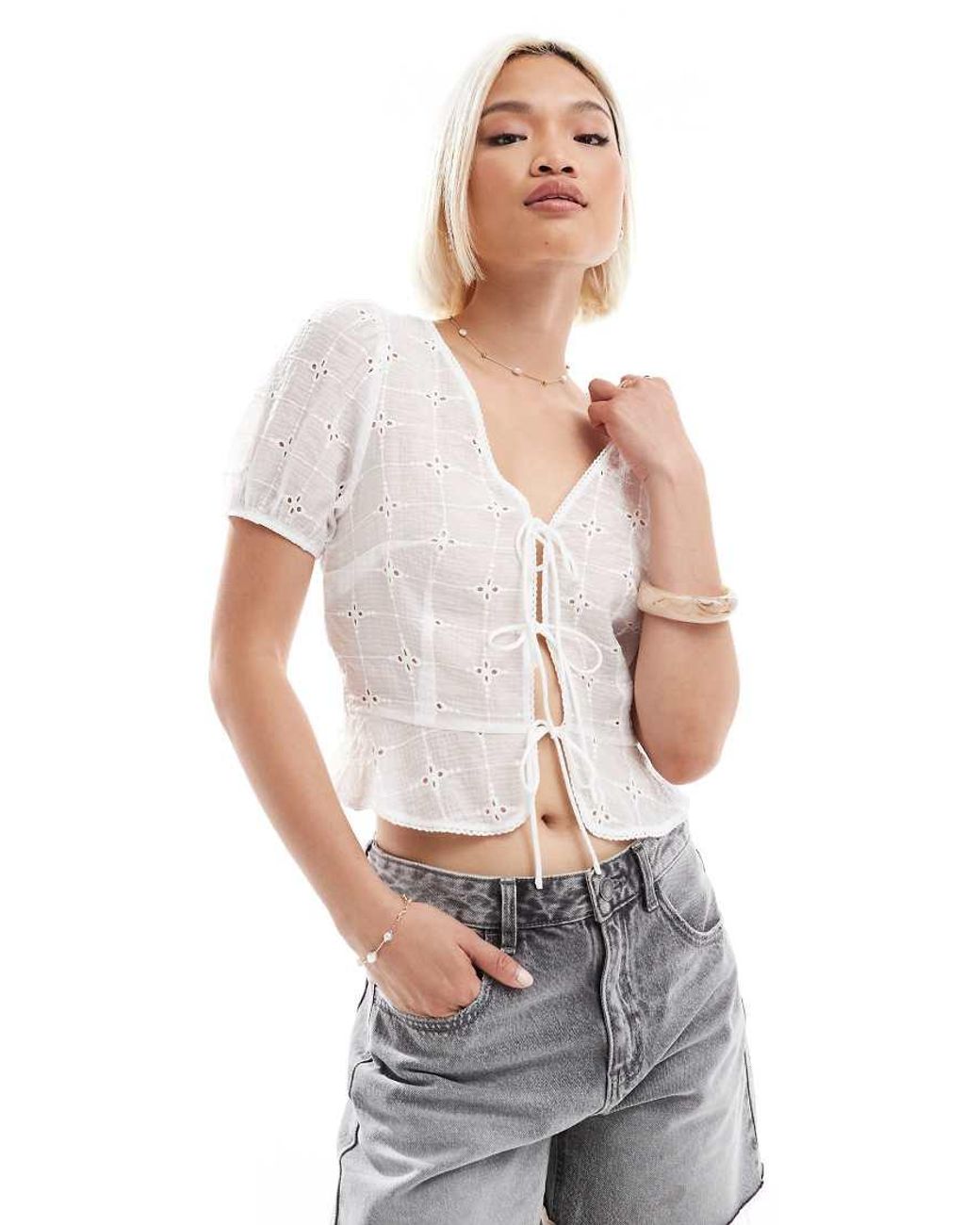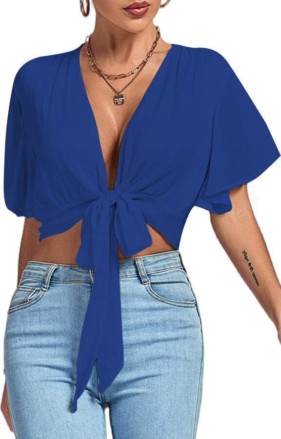 tie front blouse crop