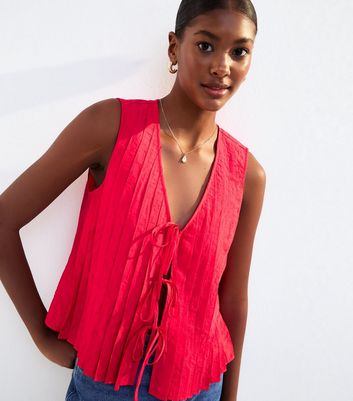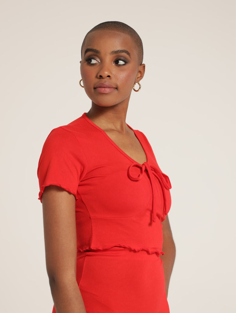 tie front top red