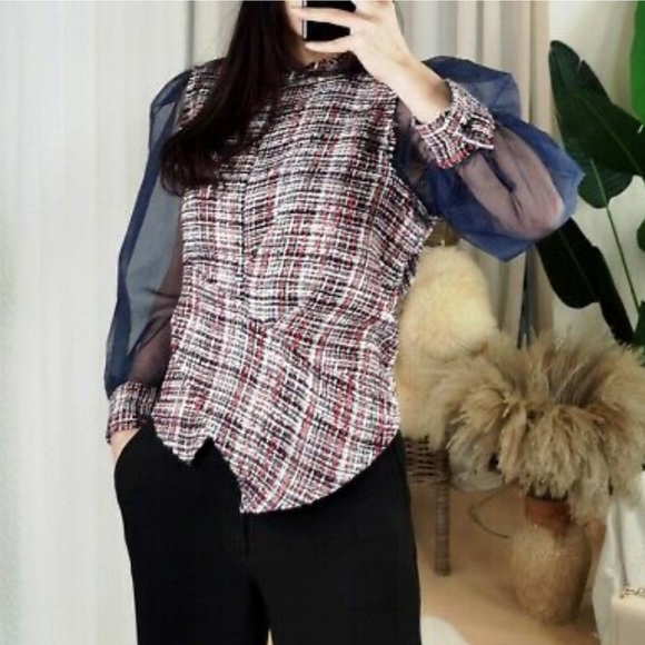 tweed blouse zara
