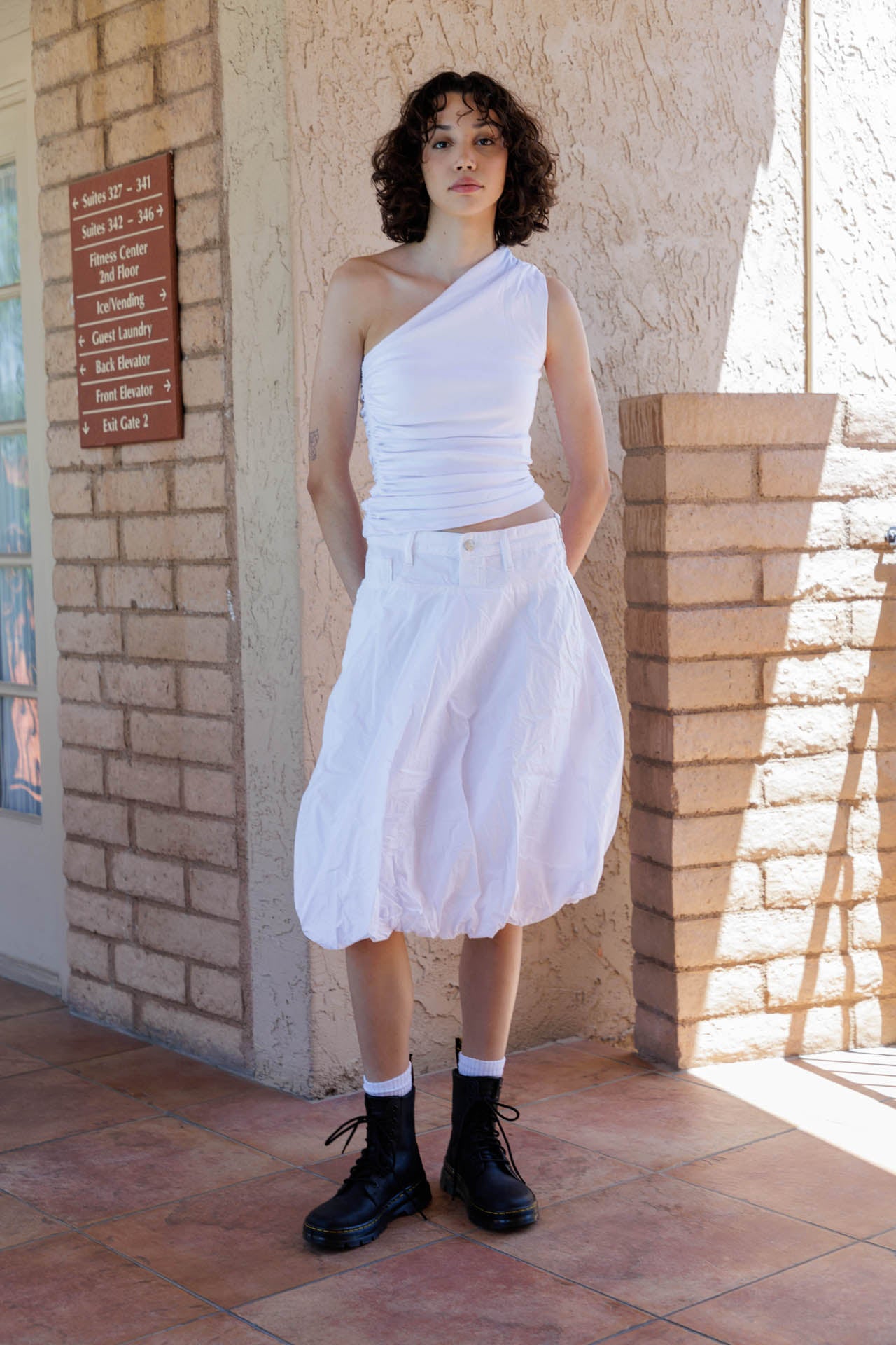 white 1 shoulder top