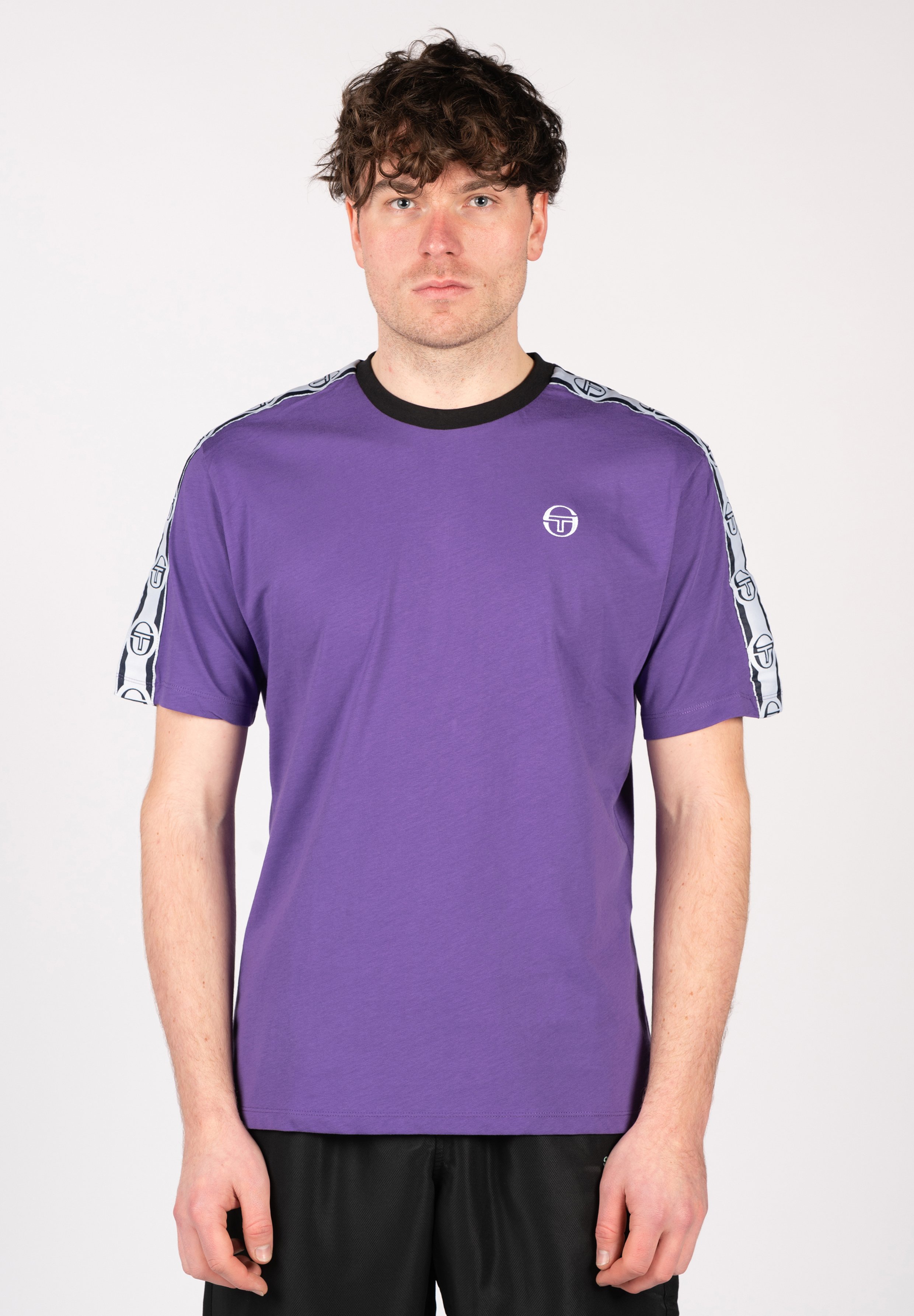 white and purple tshirt