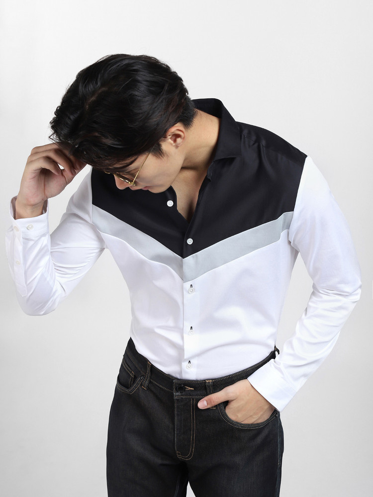 white black combination shirt