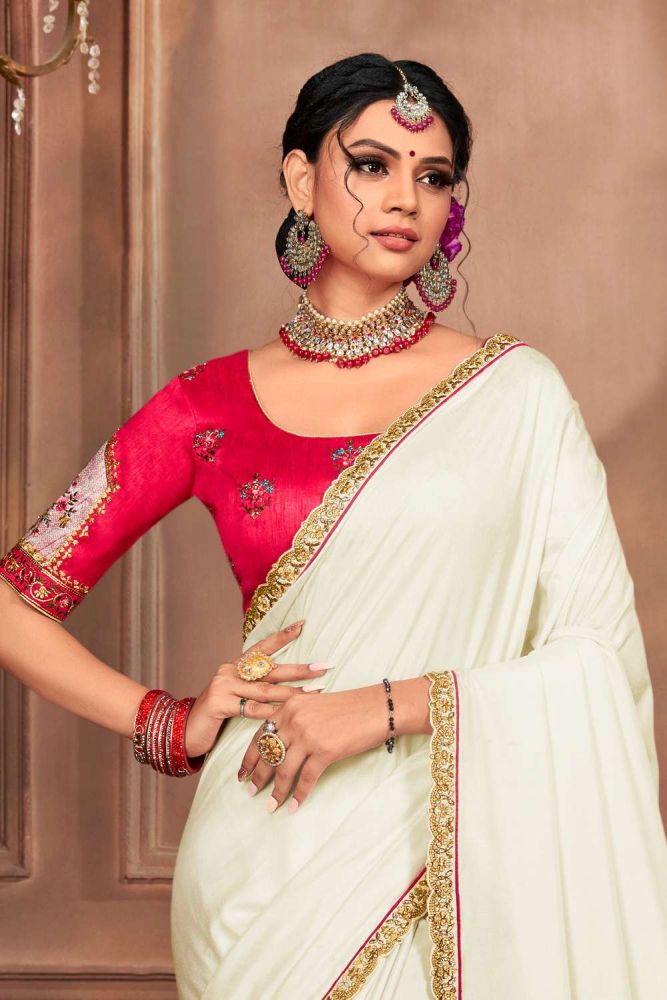 white blouse with red saree