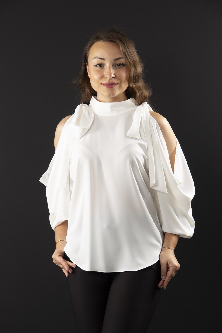 white cold shoulder blouse