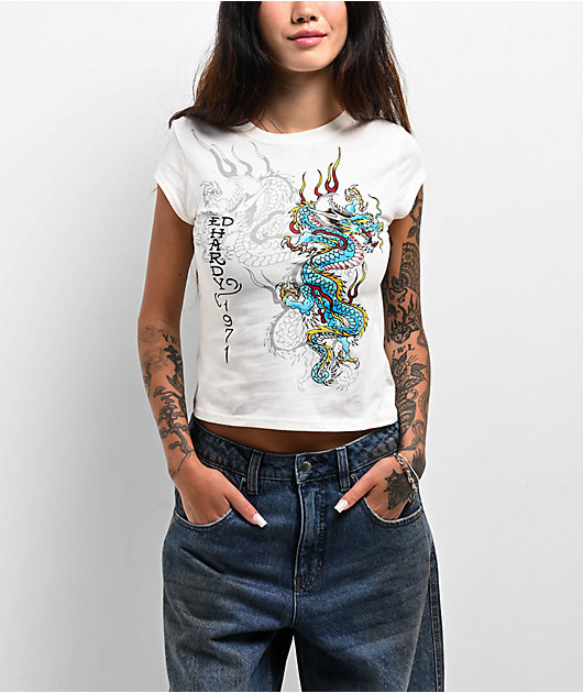 white dragon crop top