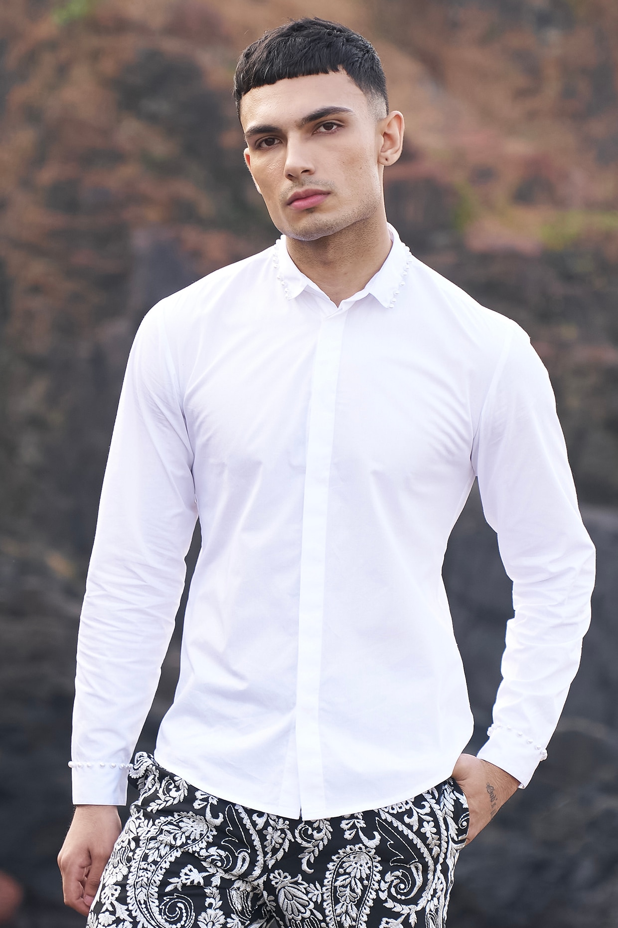 white embellished shirt