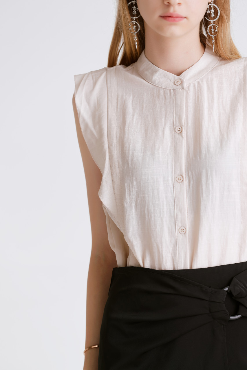 white frill sleeveless top
