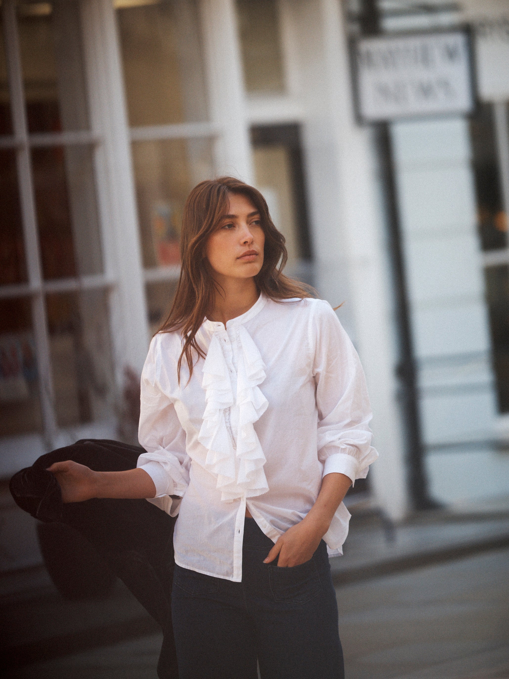 white frilled shirt