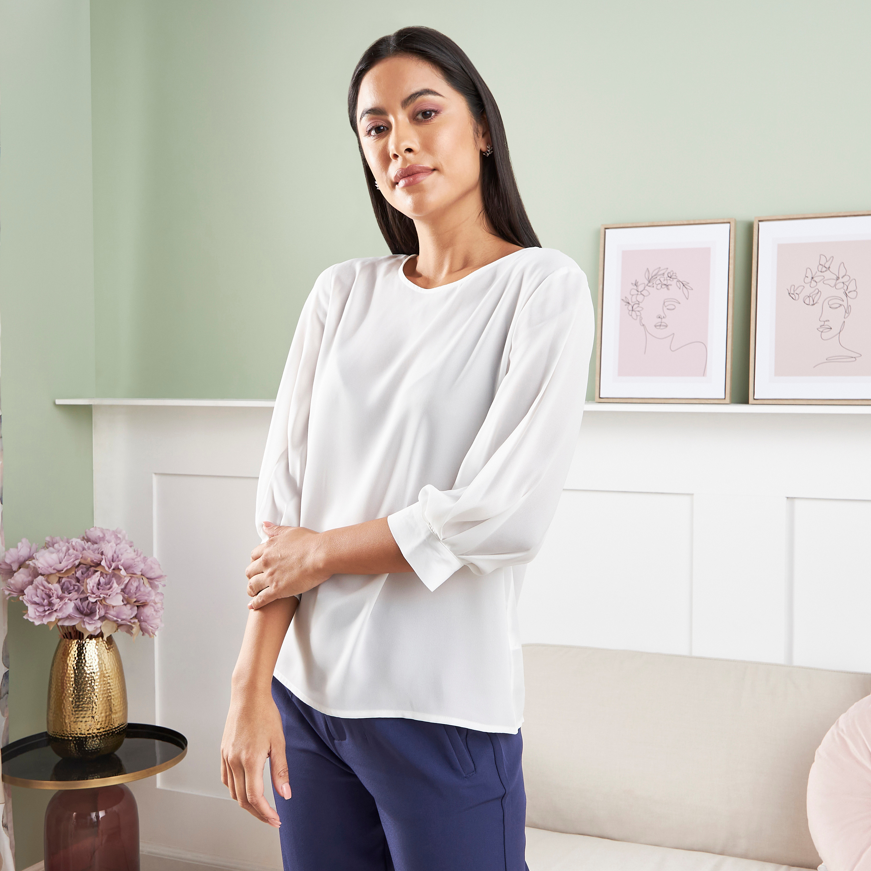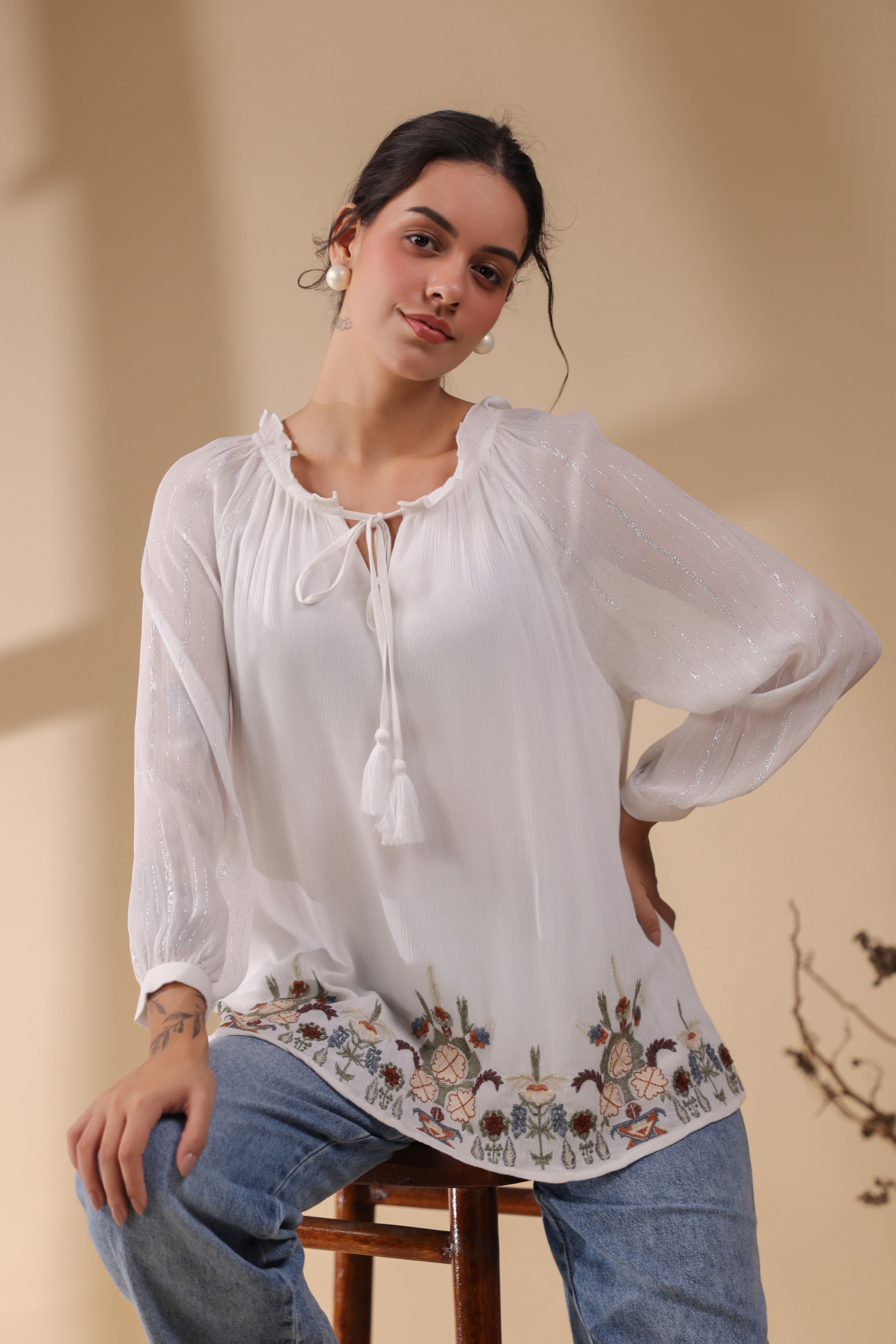 white georgette top
