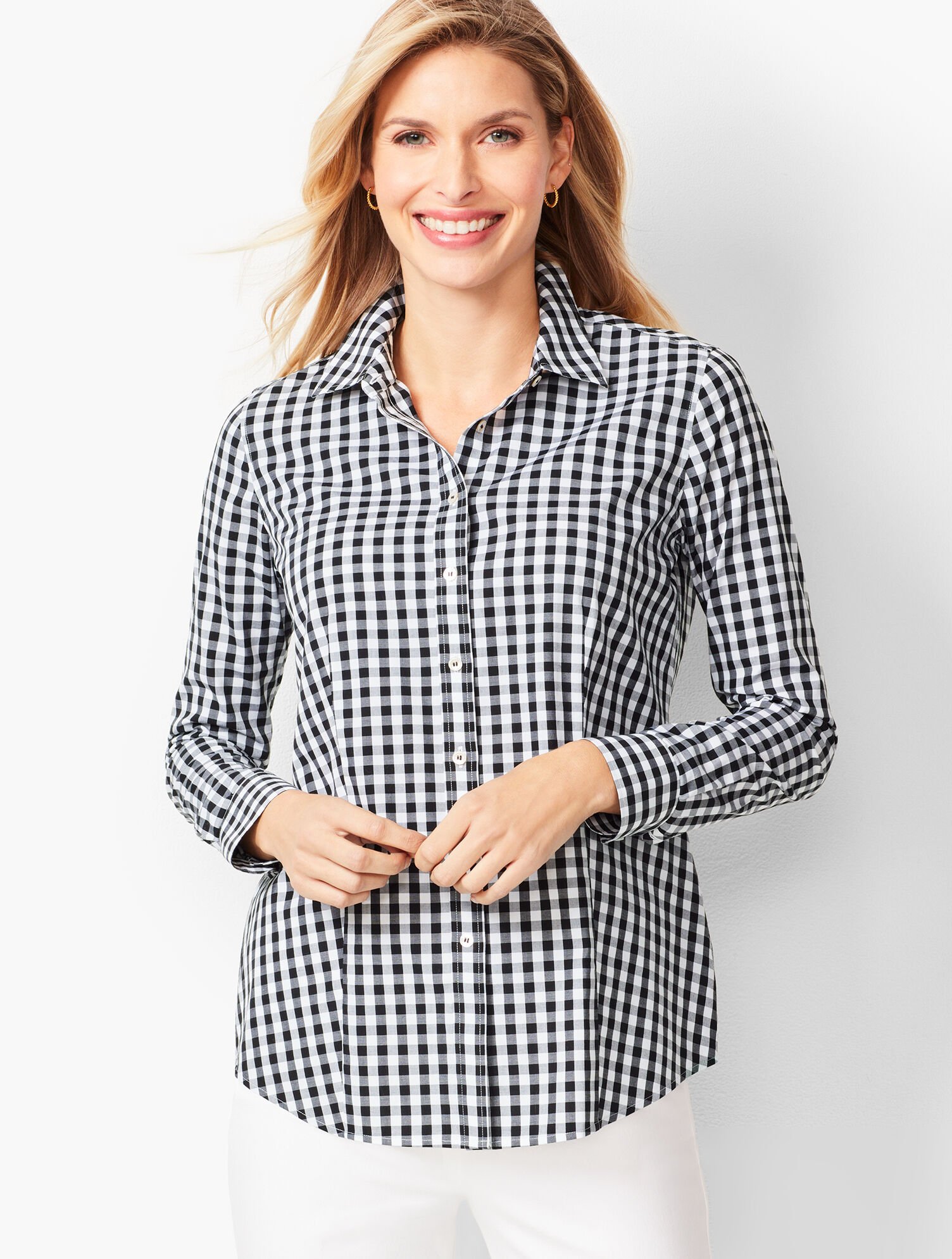 white gingham shirt