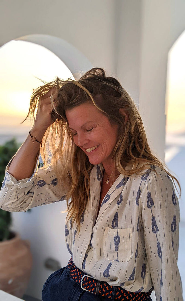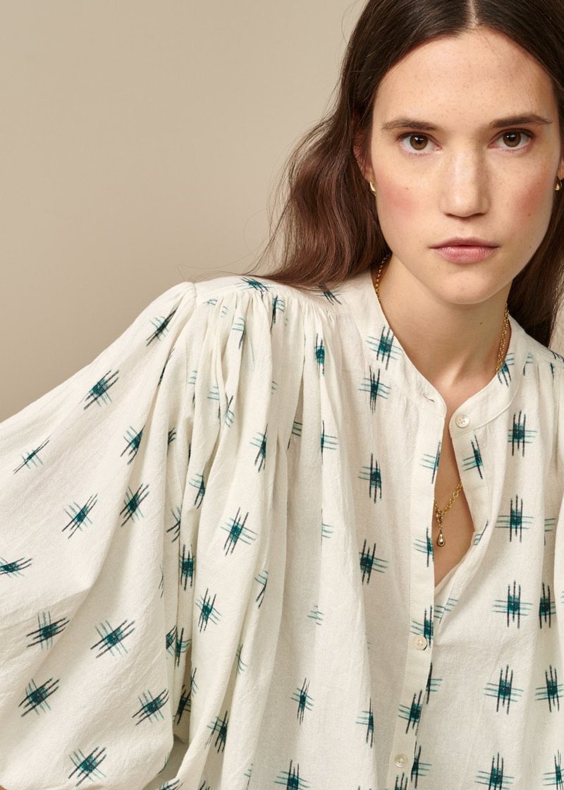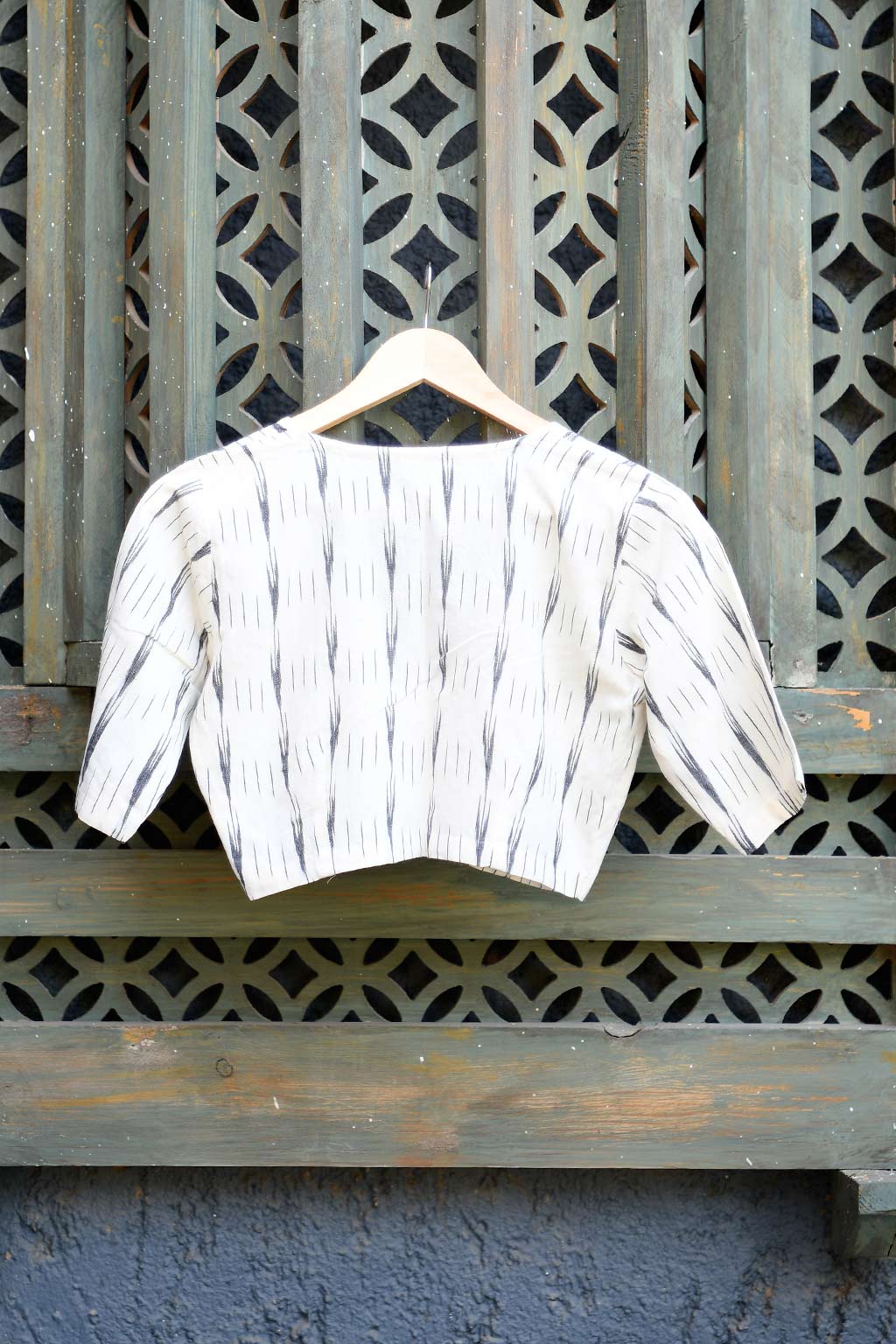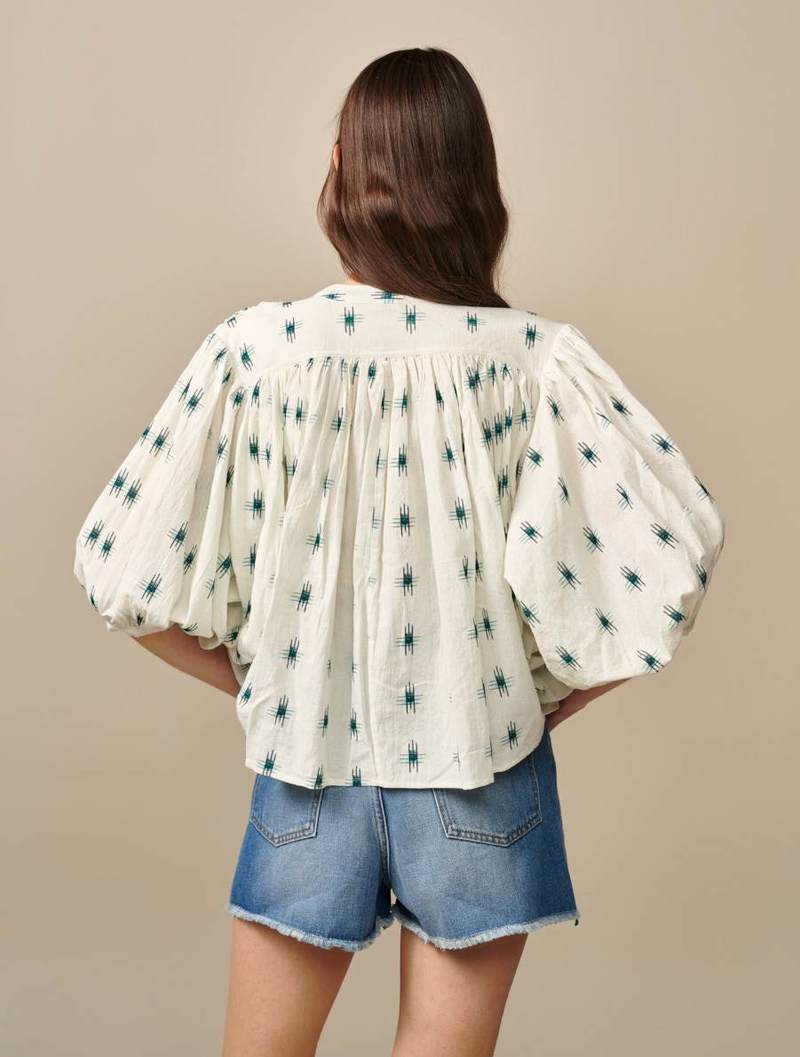 white ikat blouse