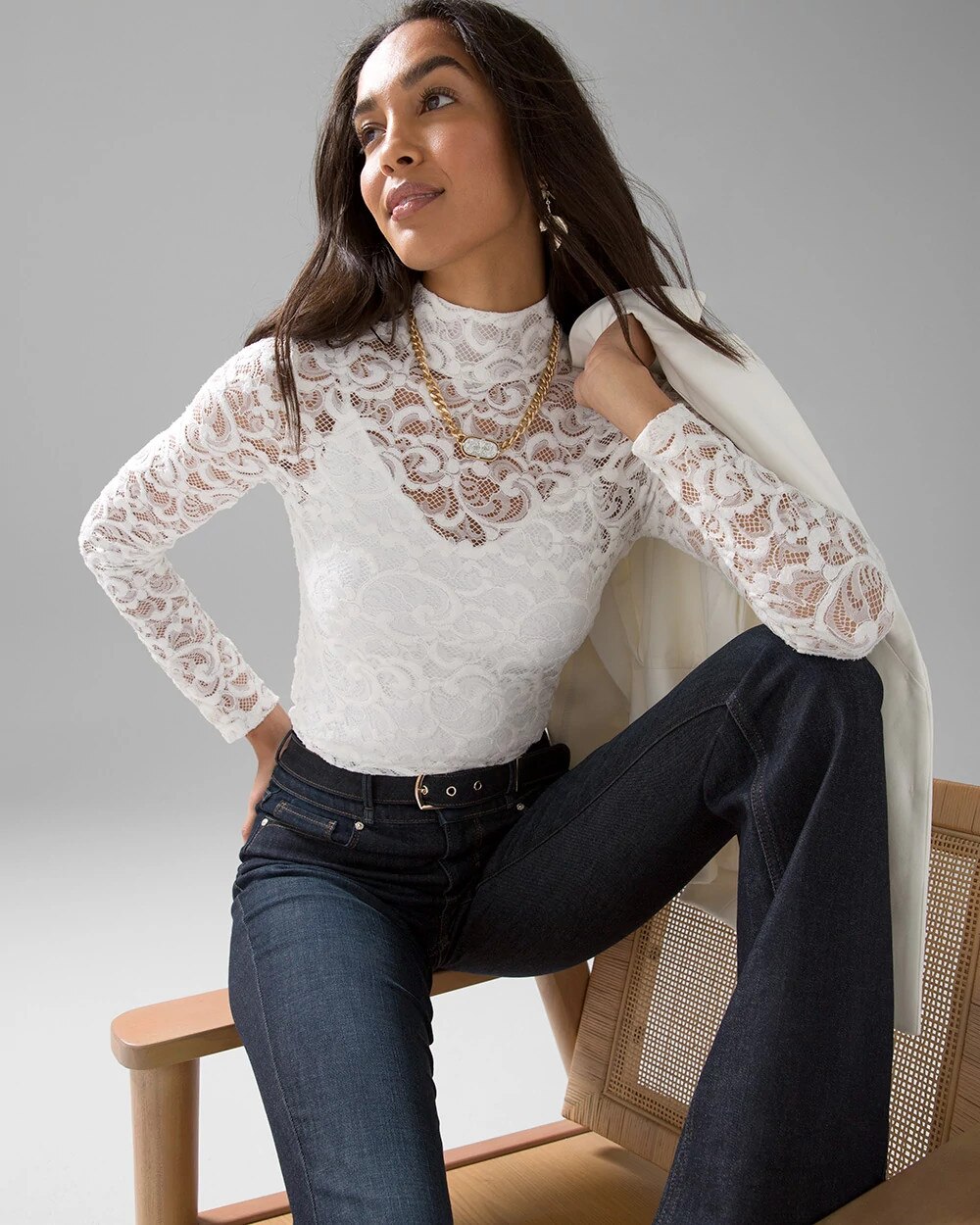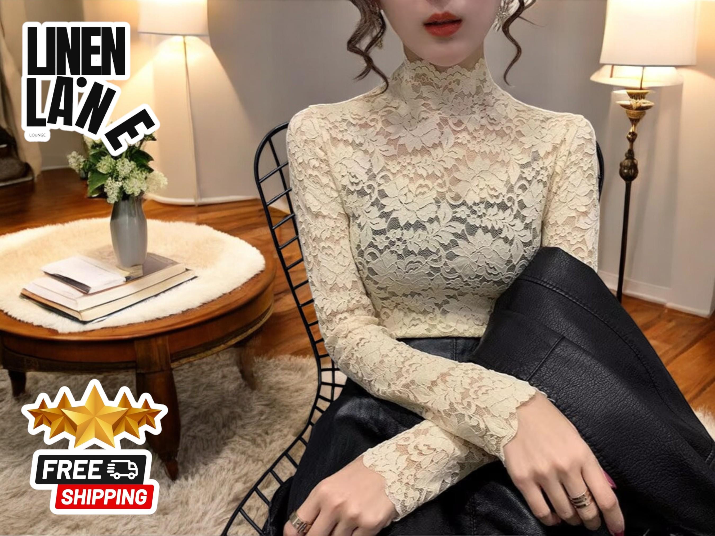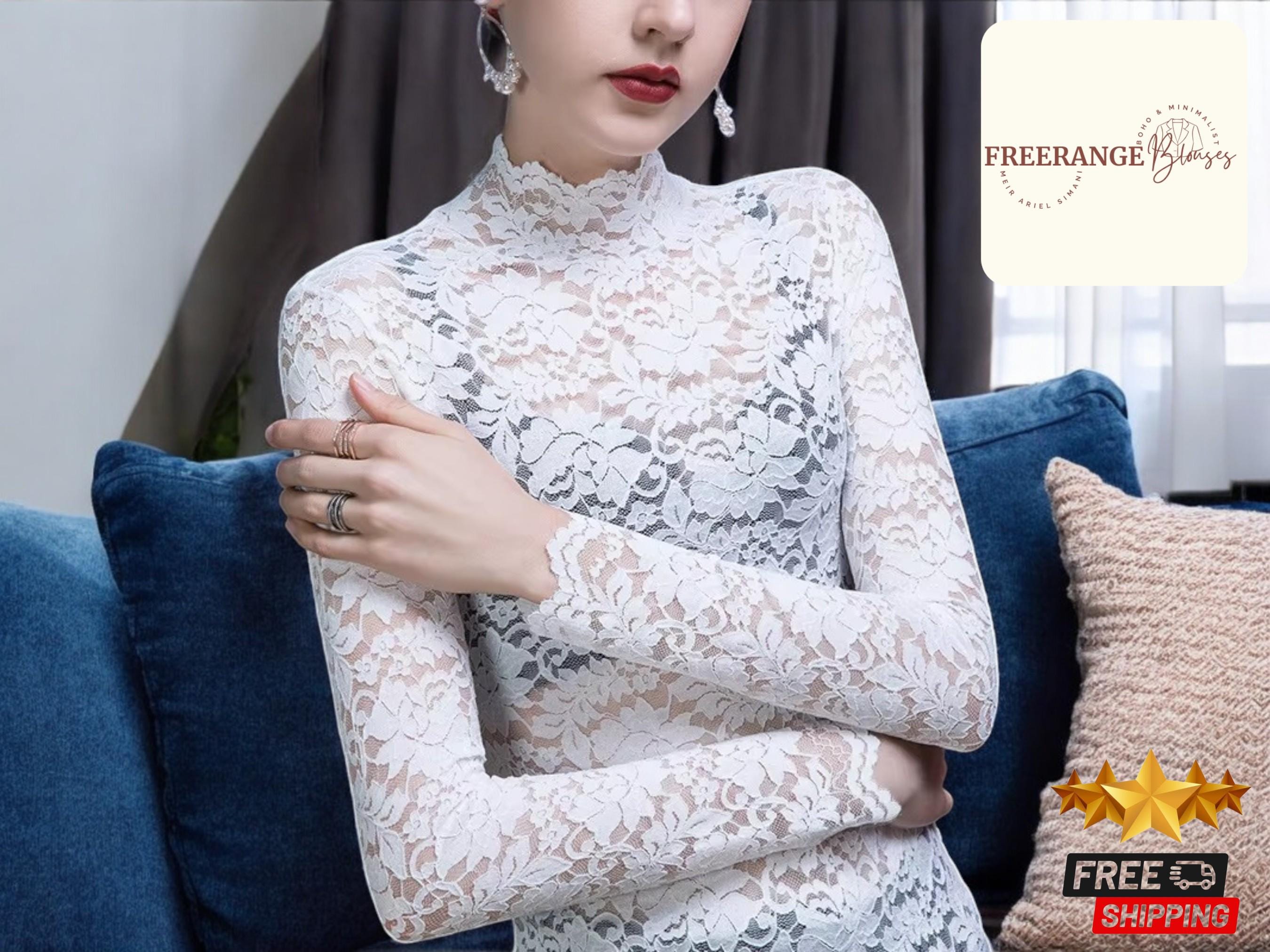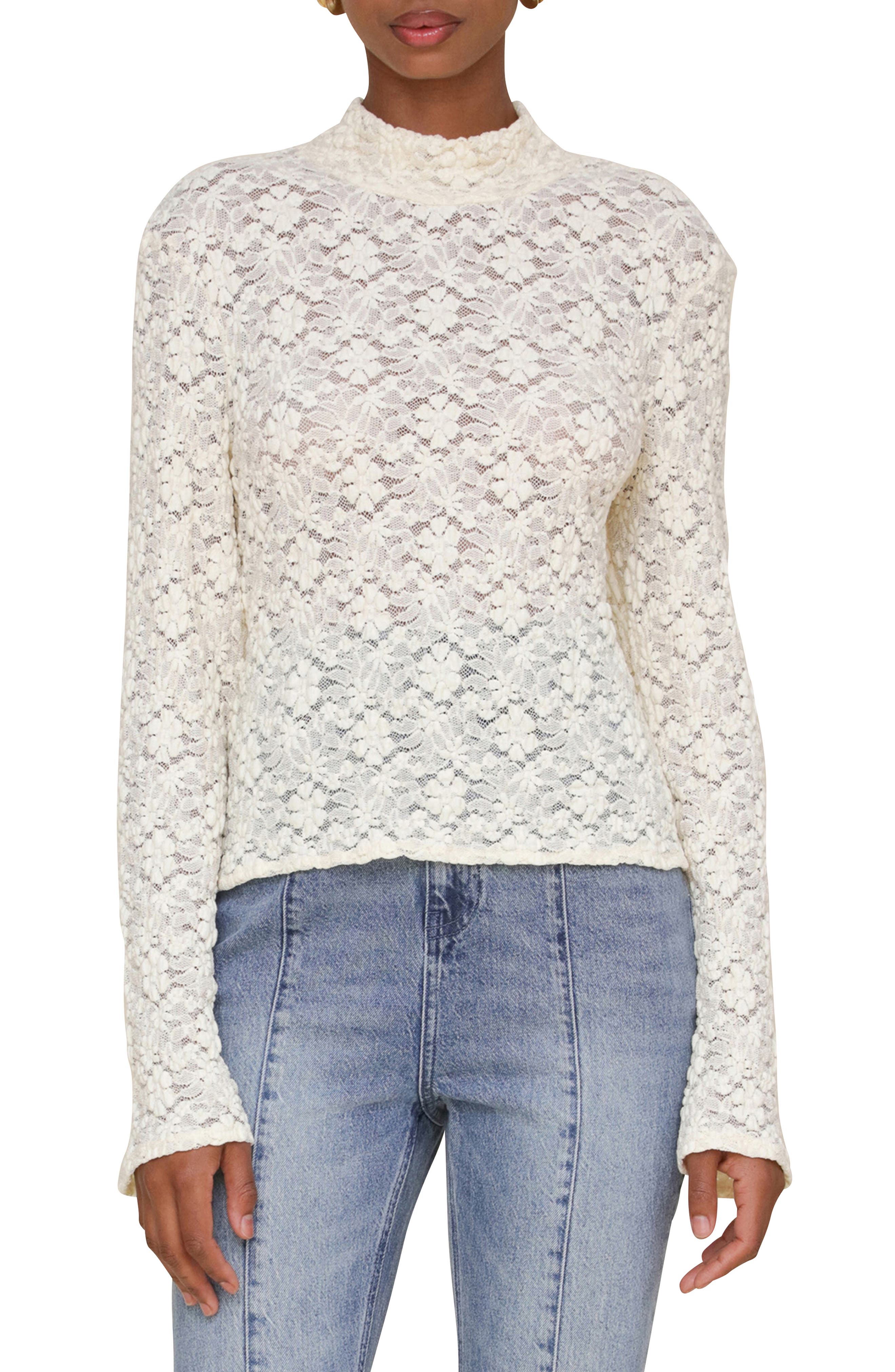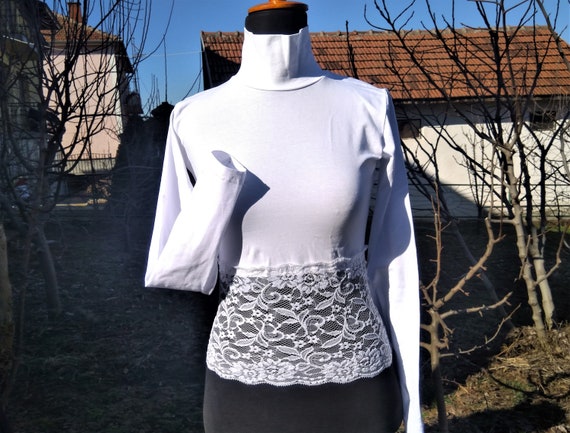 white lace turtleneck top