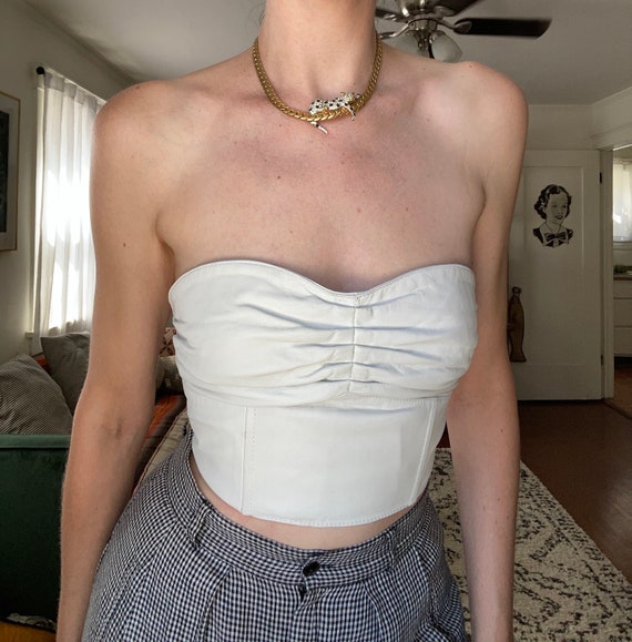 white leather bustier top