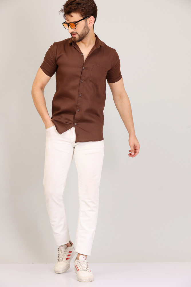 white pants brown shirt
