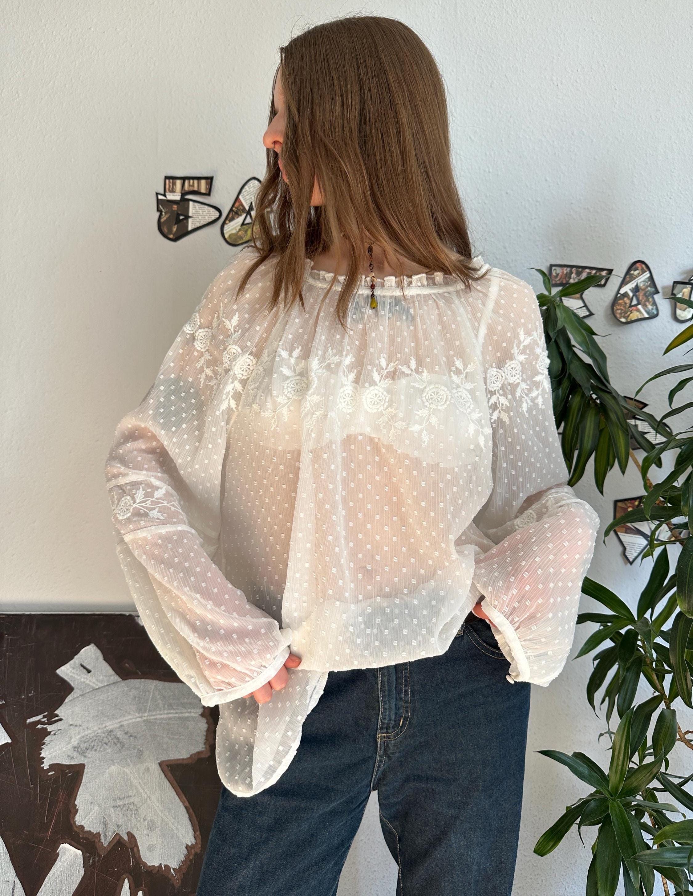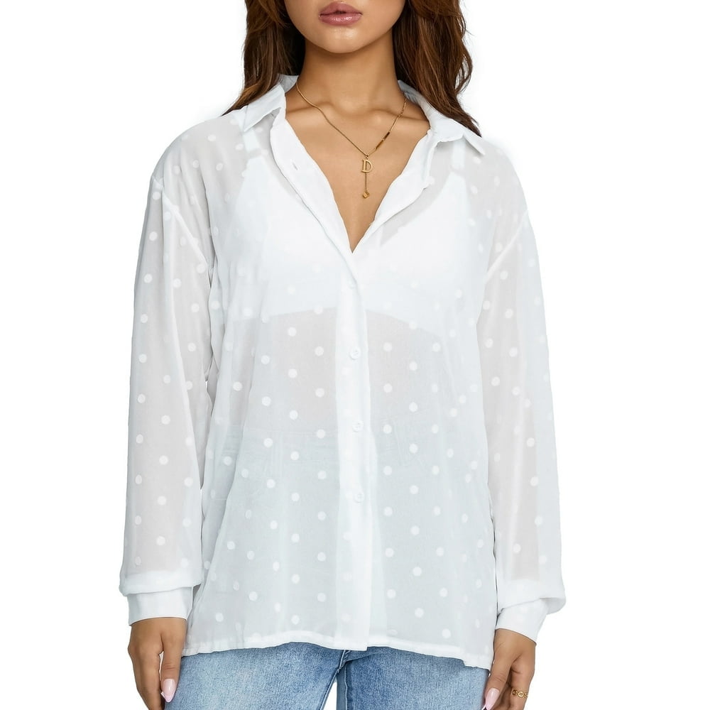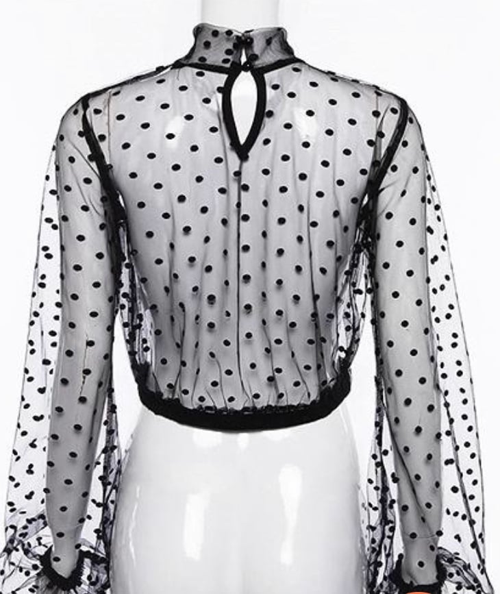 white polka dot sheer top