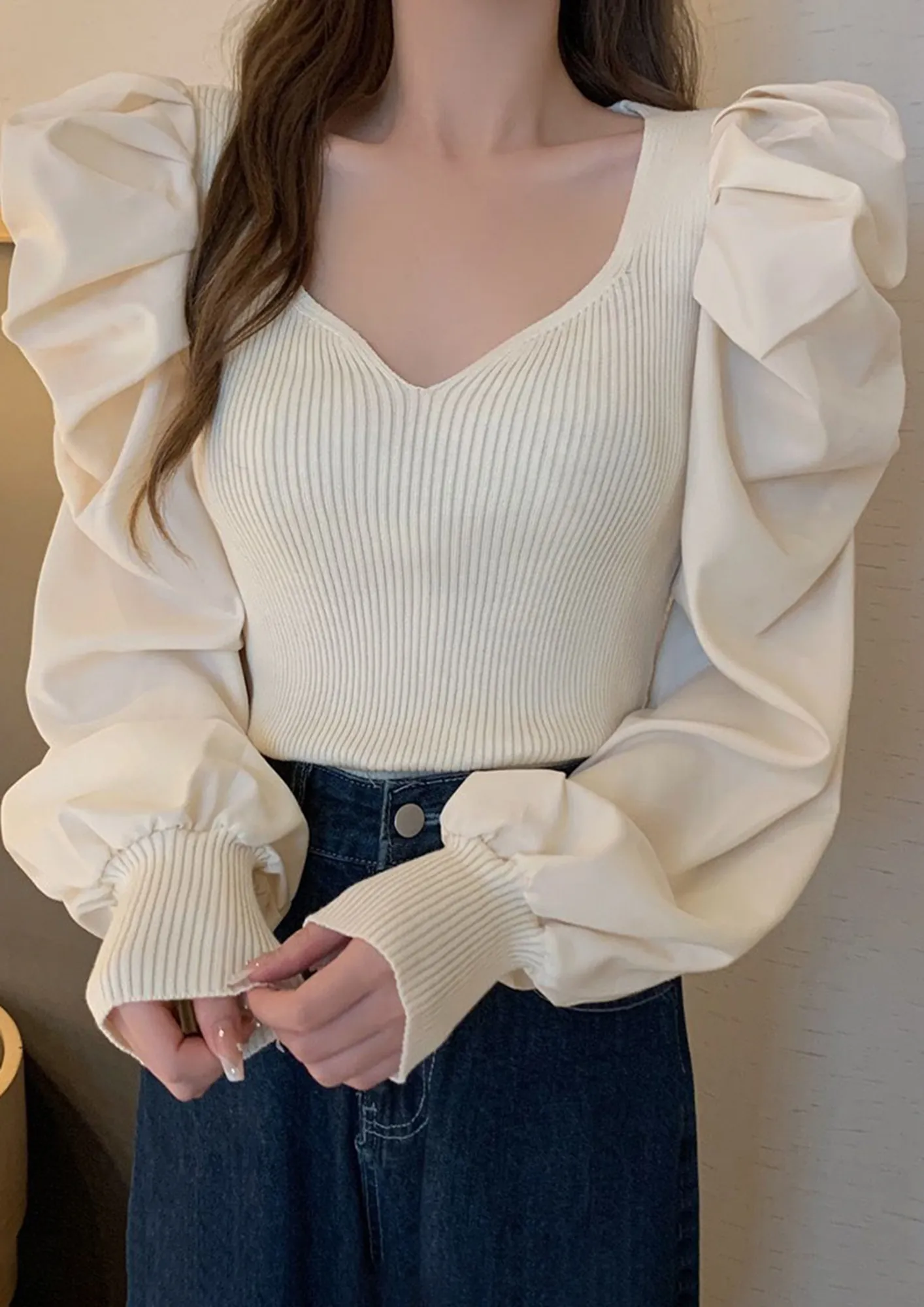 white puff blouse