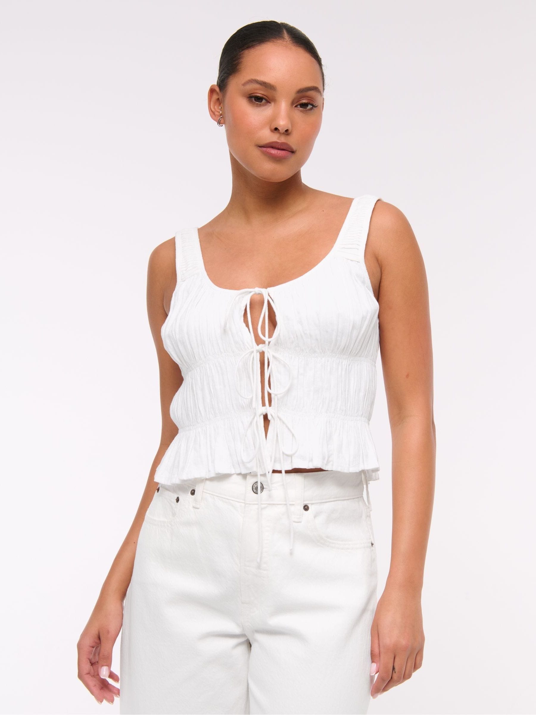 white ruched front top