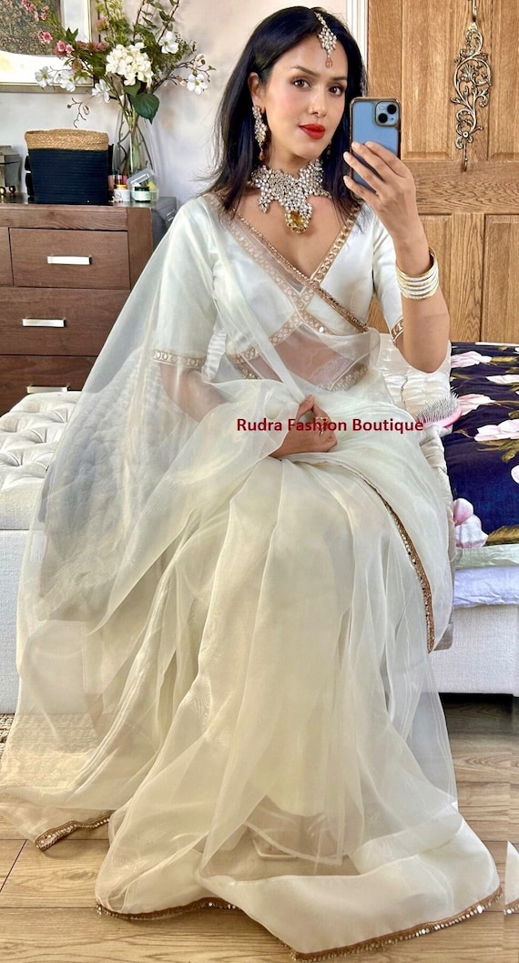 white saree matching blouse