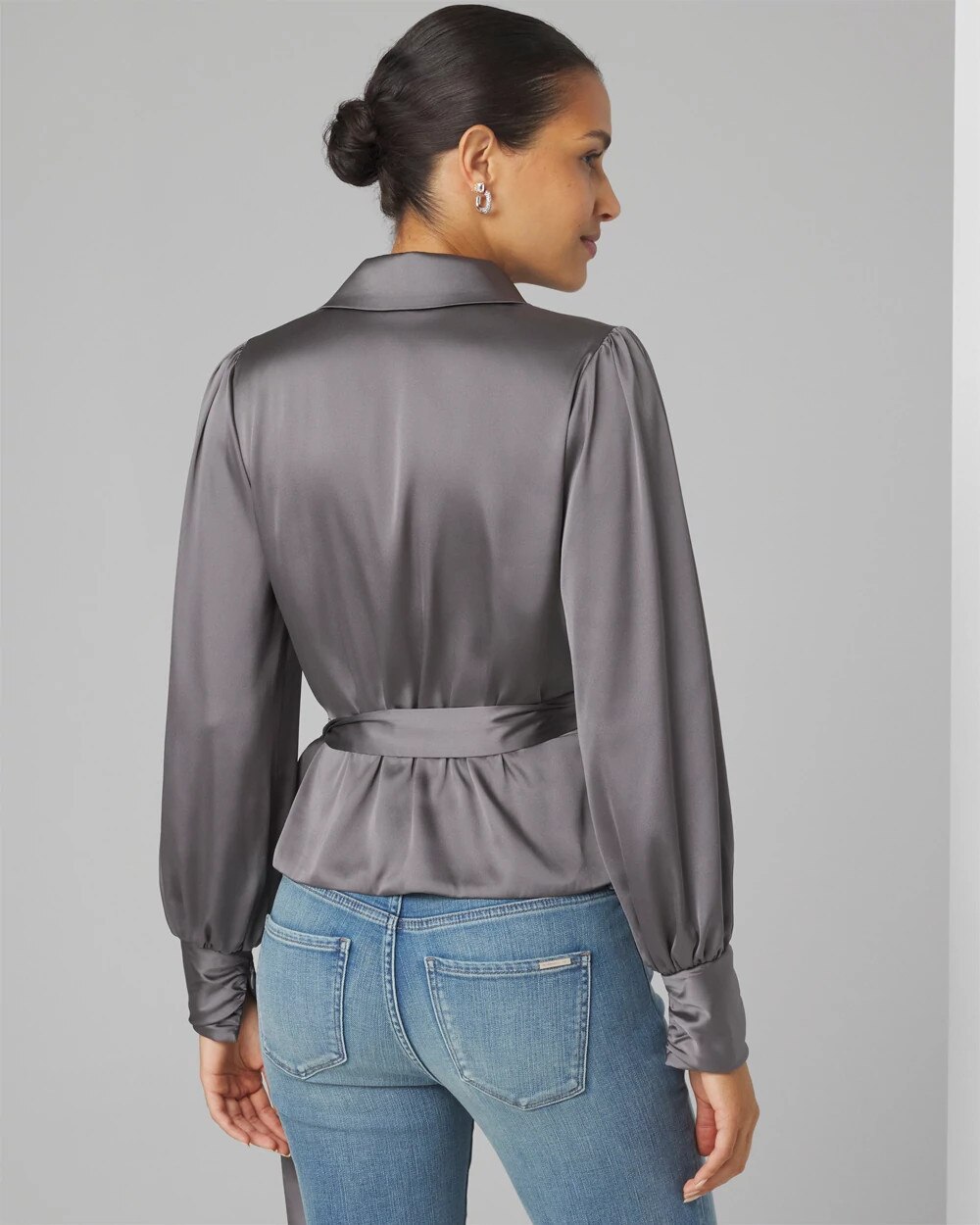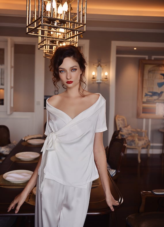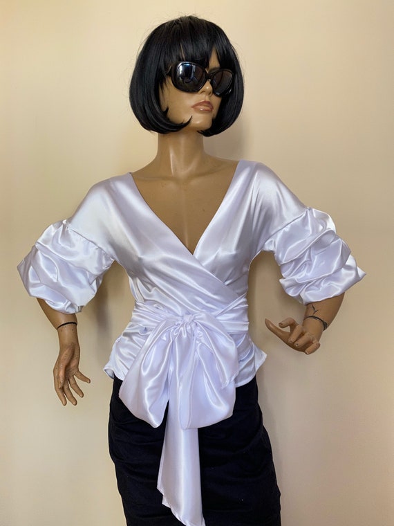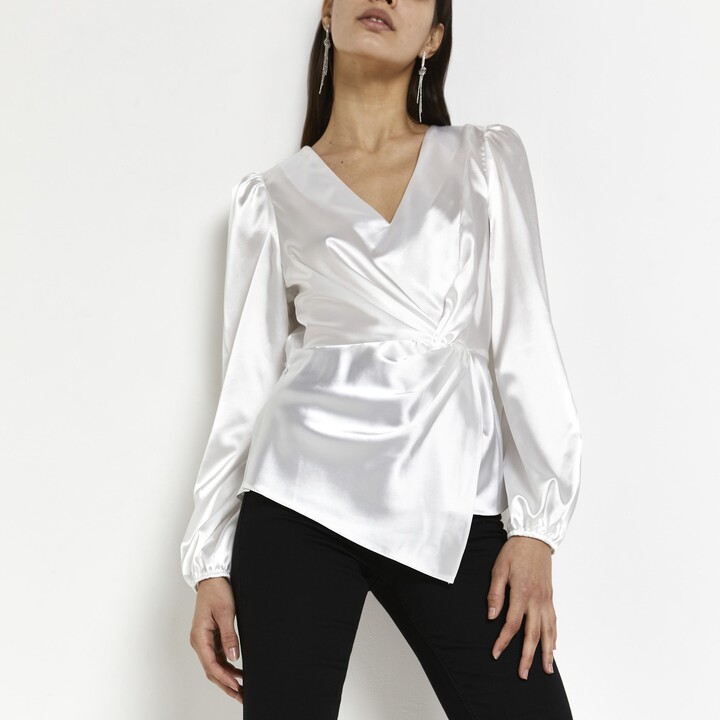 white satin wrap top