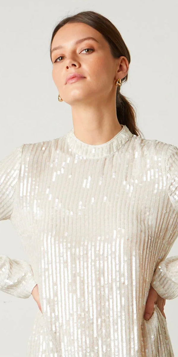 white sequin long sleeve top