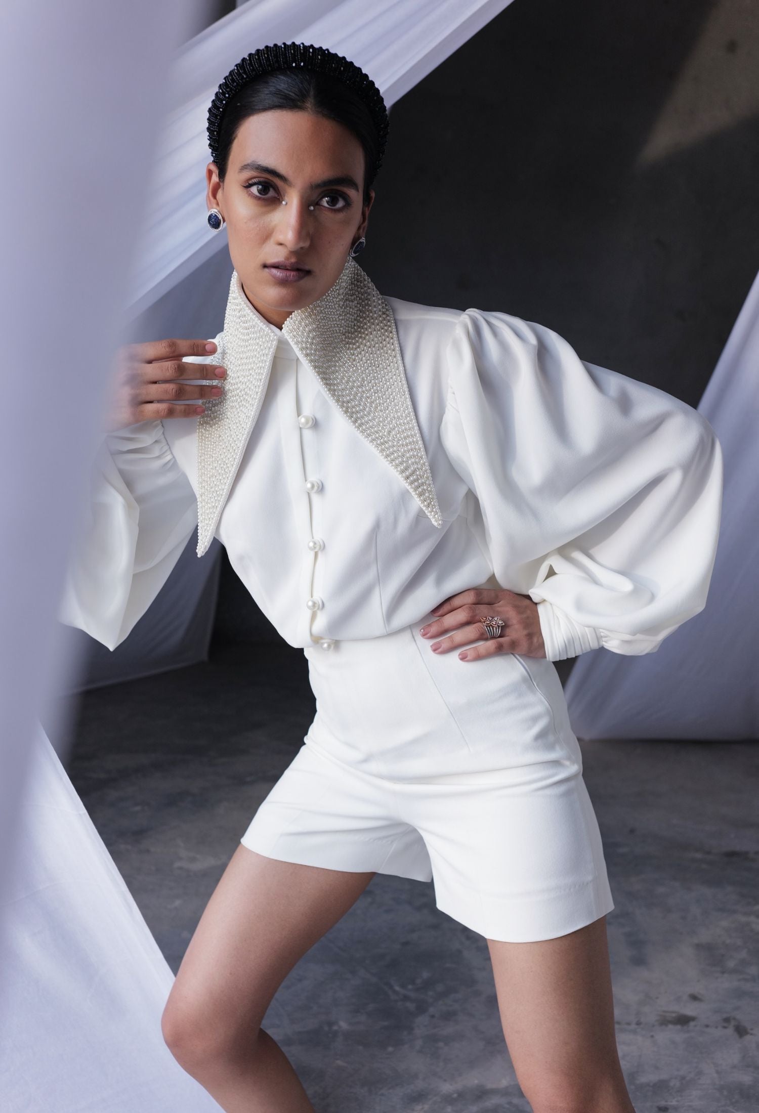 white shirt oversized collar