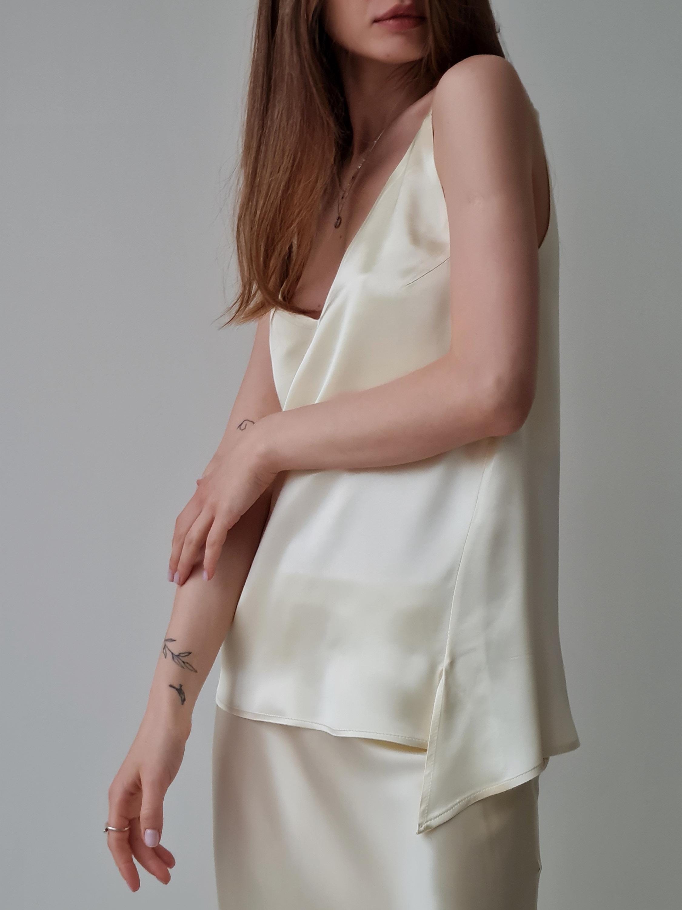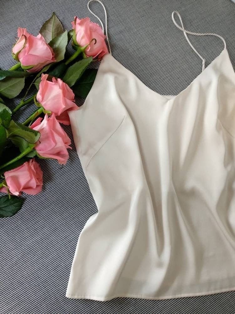 white silk spaghetti strap top