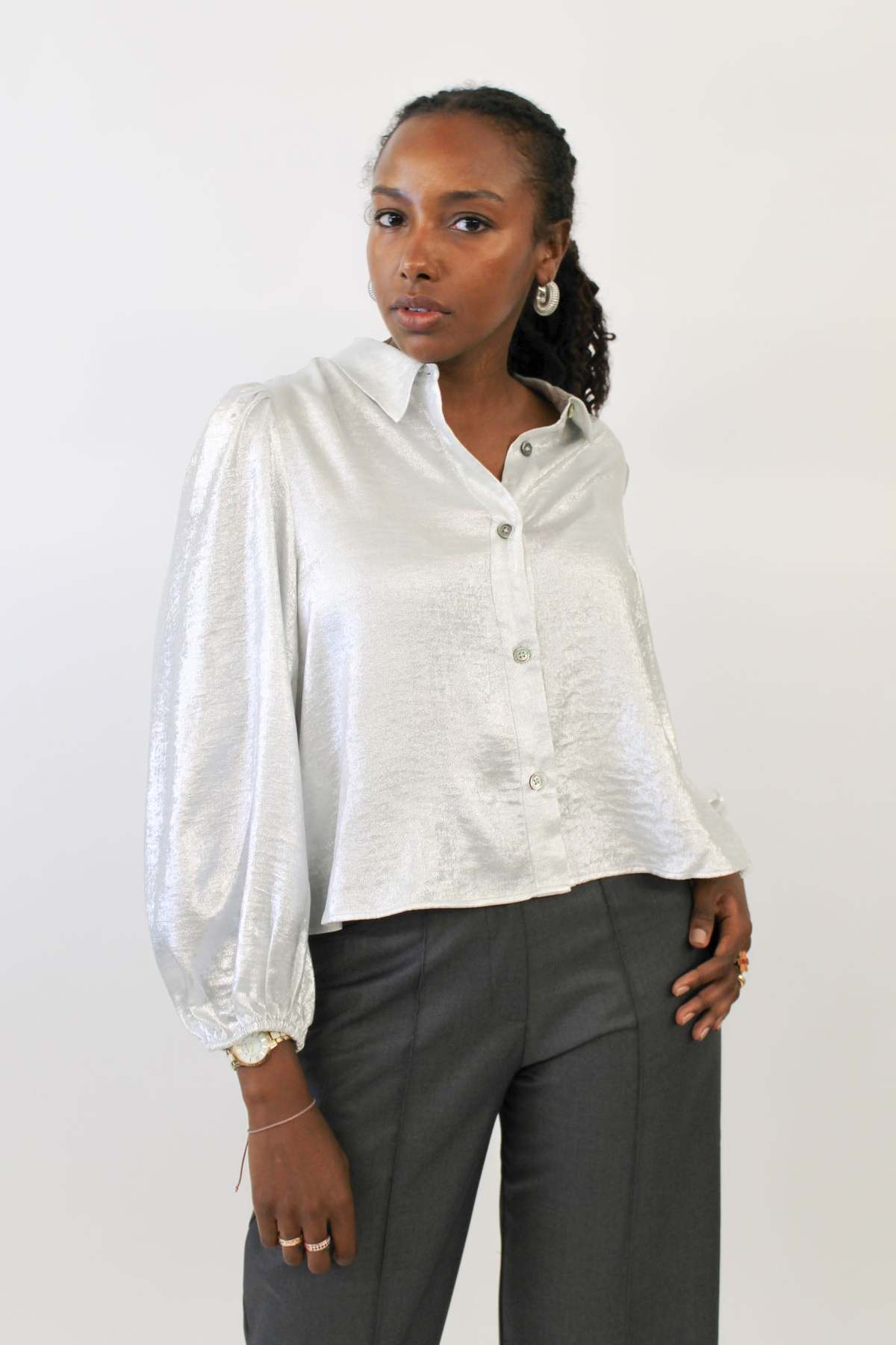 white silver blouse