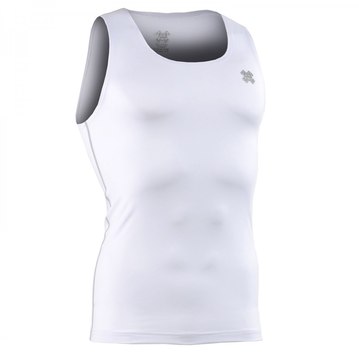 white sleeveless compression shirt