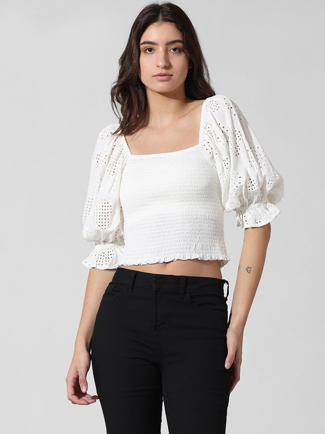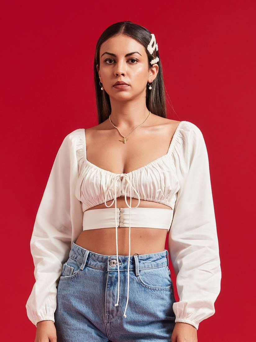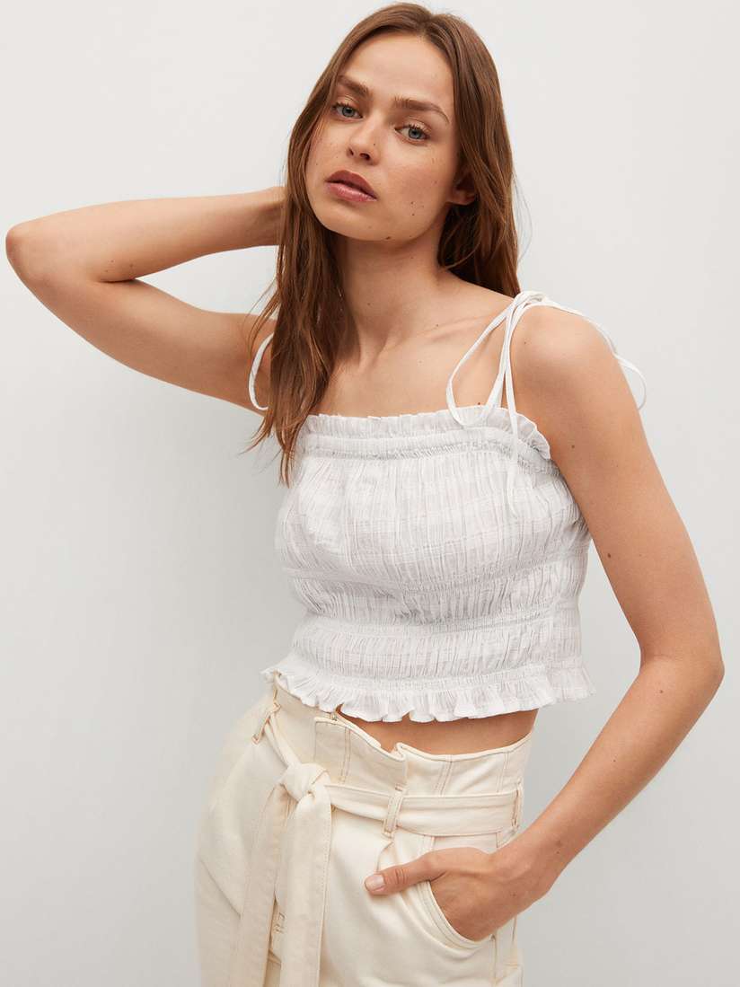 white smocked crop top