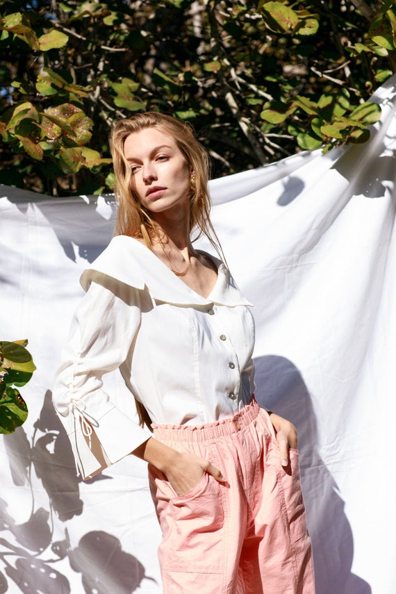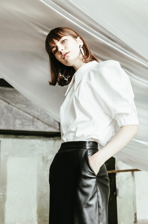 white statement blouse